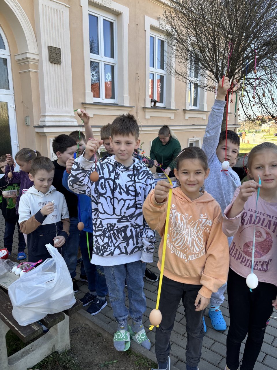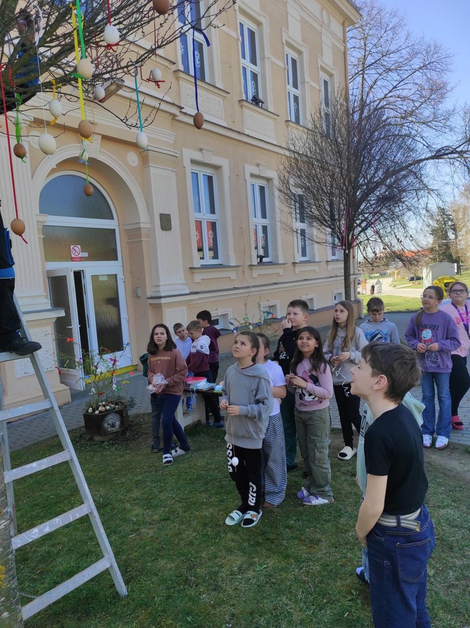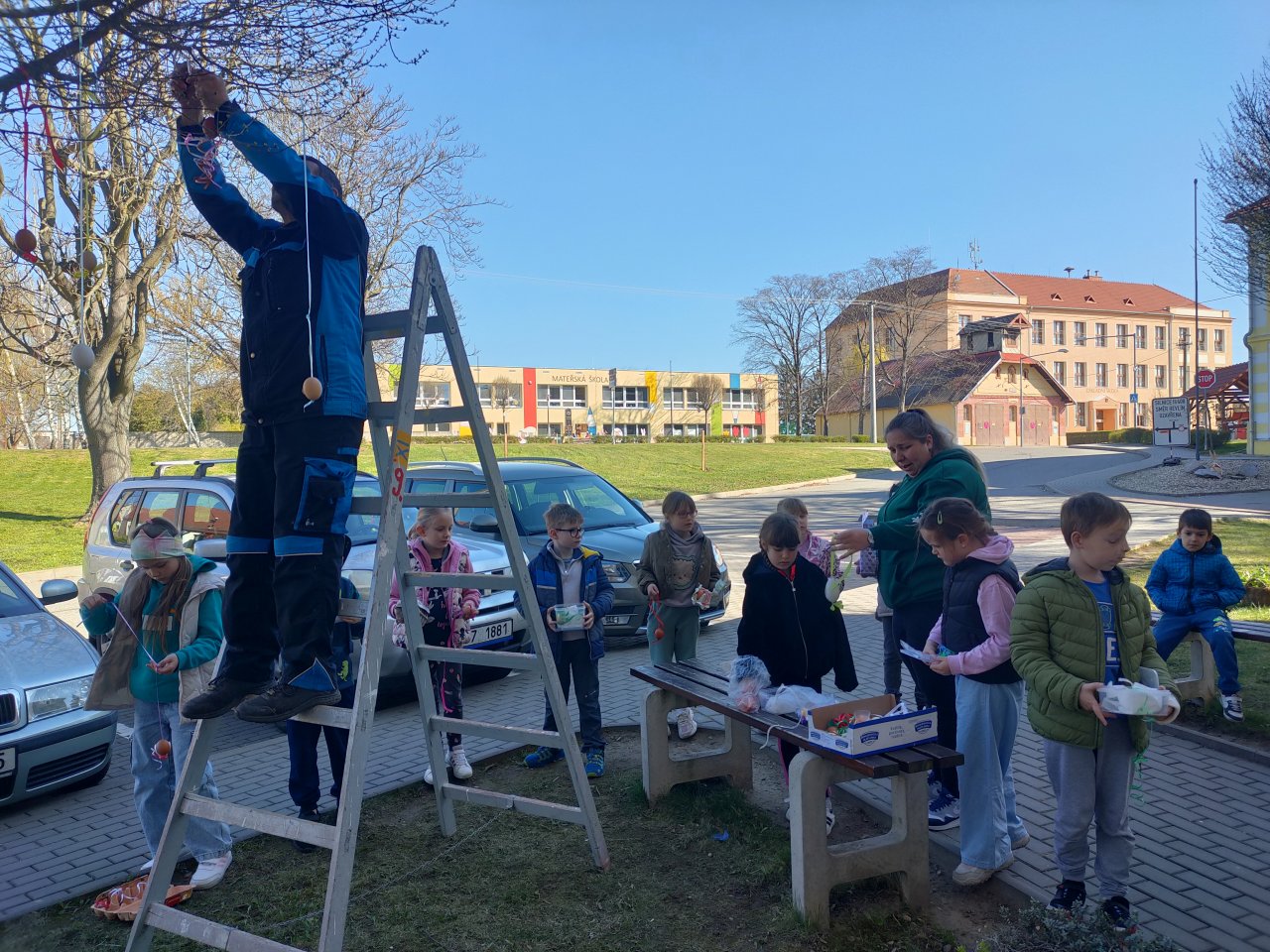 Blíží se Velikonoce a k jarní velikonoční náladě přispěly skořápkovníky, které vznikly na stromech před malou školou. Tyto skořápkovníky ozdobily děti z 1. stupně vyfouknutými vajíčky přivázanými na barevných stužkách.