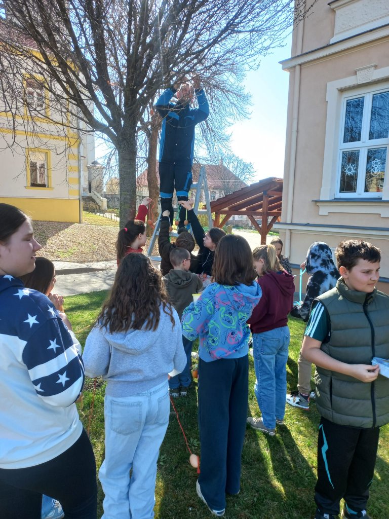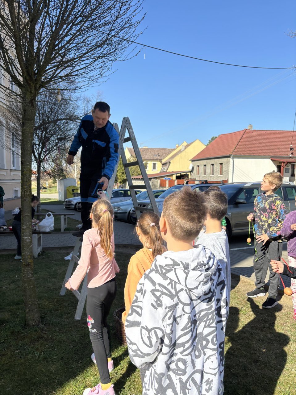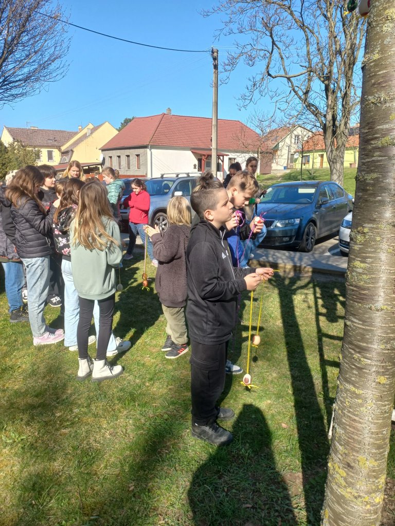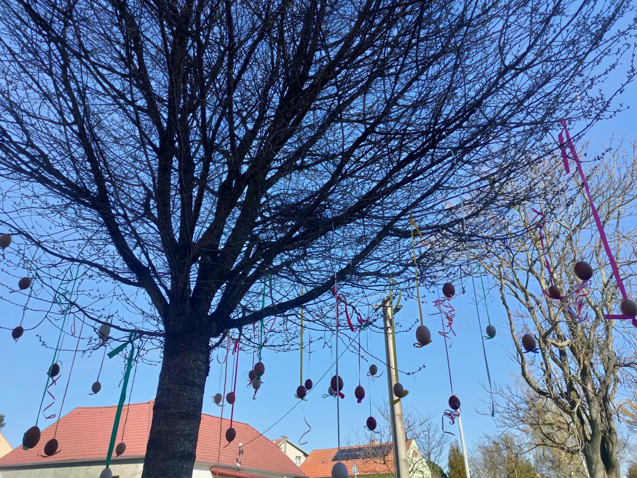 Blíží se Velikonoce a k jarní velikonoční náladě přispěly skořápkovníky, které vznikly na stromech před malou školou. Tyto skořápkovníky ozdobily děti z 1. stupně vyfouknutými vajíčky přivázanými na barevných stužkách.