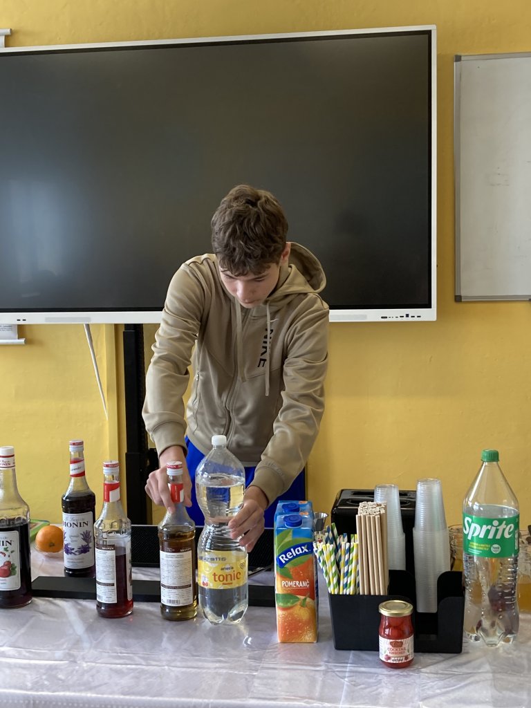 Zvláštní poděkování patří i studentkám, které se na prezentaci podílely – jejich práce byla inspirativní. Praktická ukázka míchání koktejlů zaujala nejen budoucí deváťáky, ale i pedagogy.