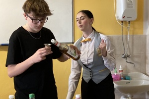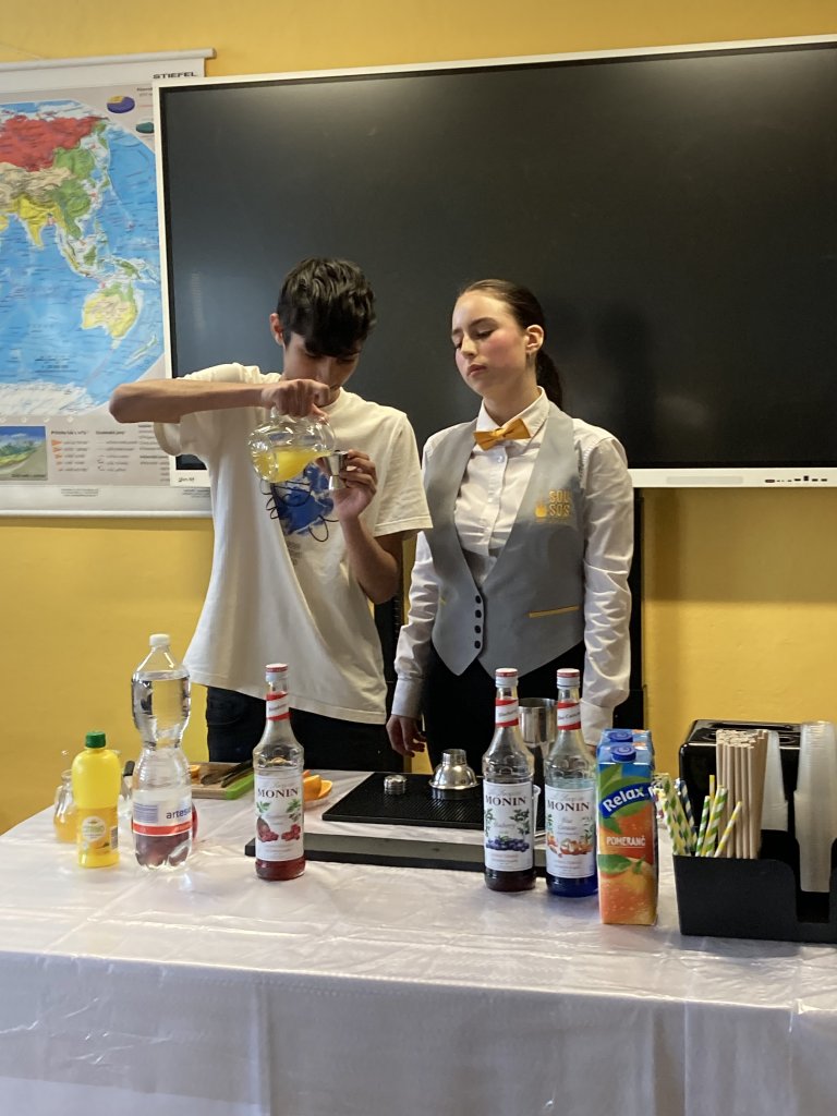 Po krátkém úvodu o náplni studia a možnostech uplatnění absolventů na trhu práce, si žáci mohli sami vyzkoušet míchání koktejlů pod dohledem studentek střední školy. Největší úspěch měly klasické kombinace s ovocnými šťávami a zdobením, které si naši žáci s nadšením připravili.