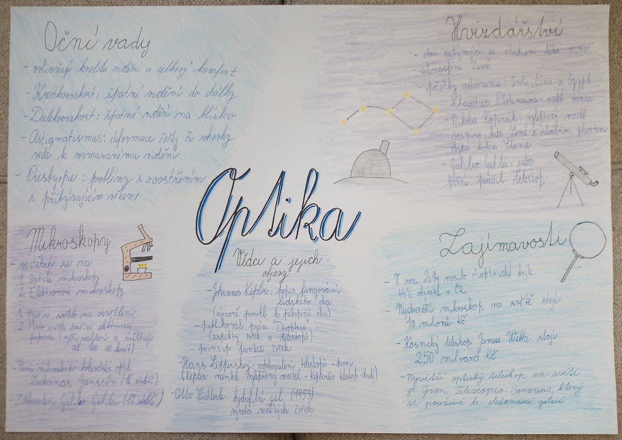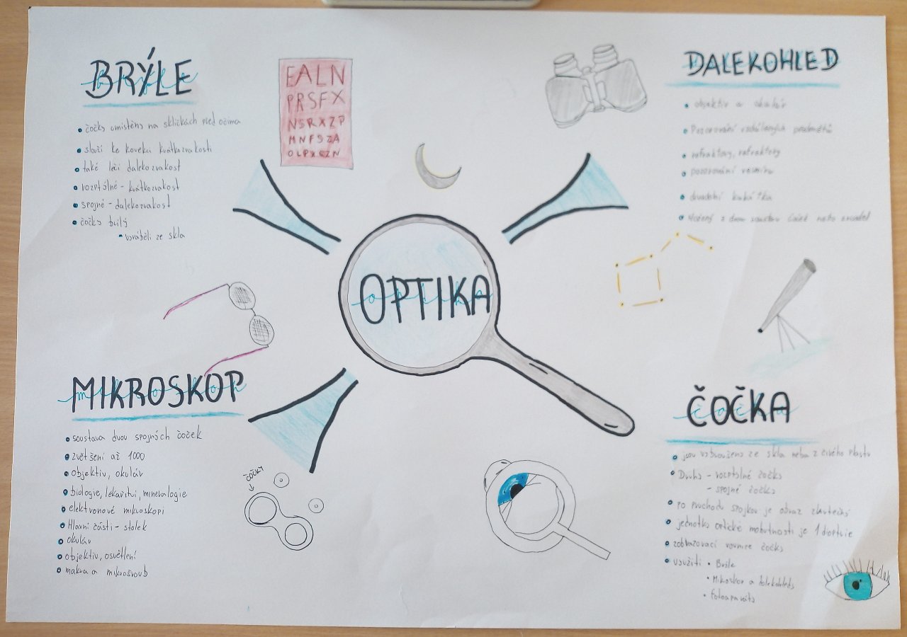 Žáci 9. třídy tvořili myšlenkové mapy na téma optika