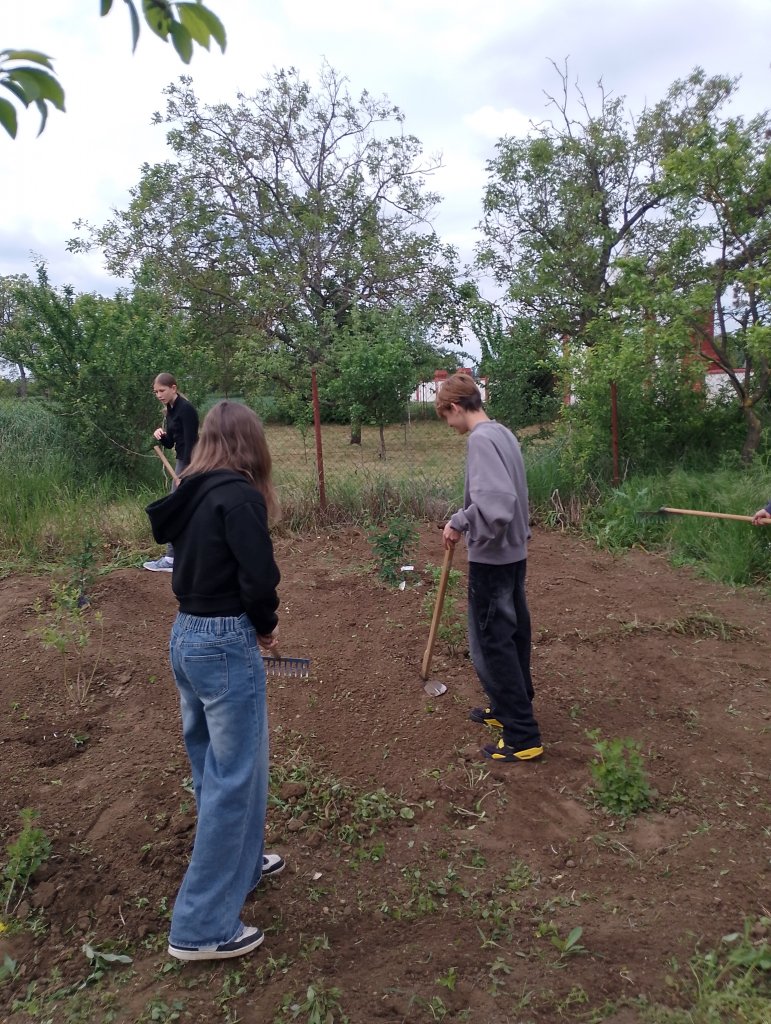 Datum: 6. 5. 2025V úterý 6. 5. 2025 se žáci sedmé třídy zapojili do údržby školní zahrady. V rámci pracovních činností okopávali a pleli rybízové a nově vysázené ovocné keře. Práce šla všem od ruky a zahrada teď vypadá o něco upraveněji.