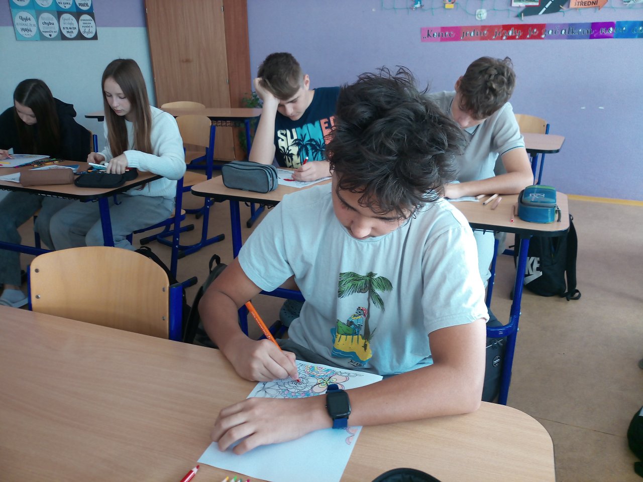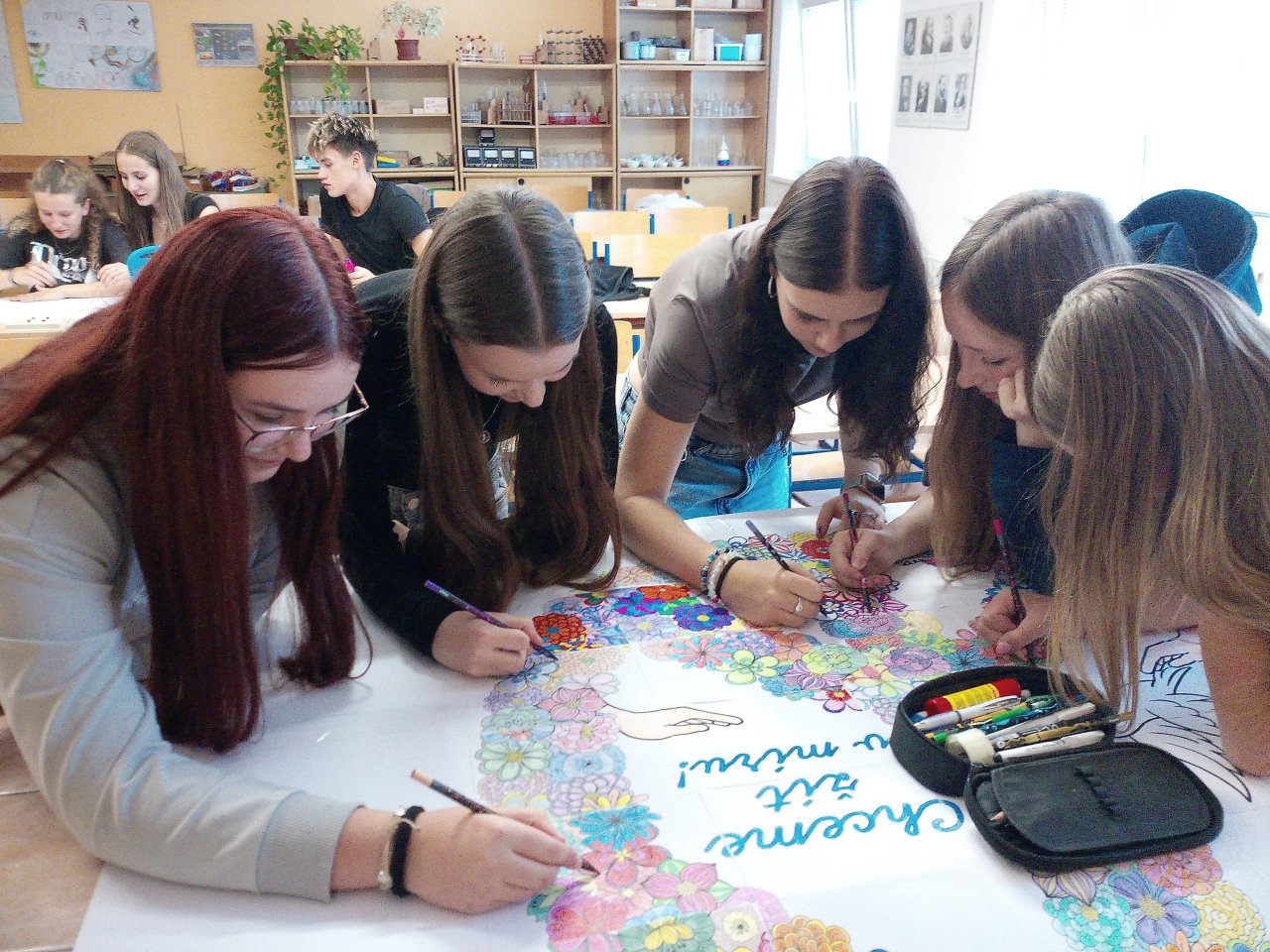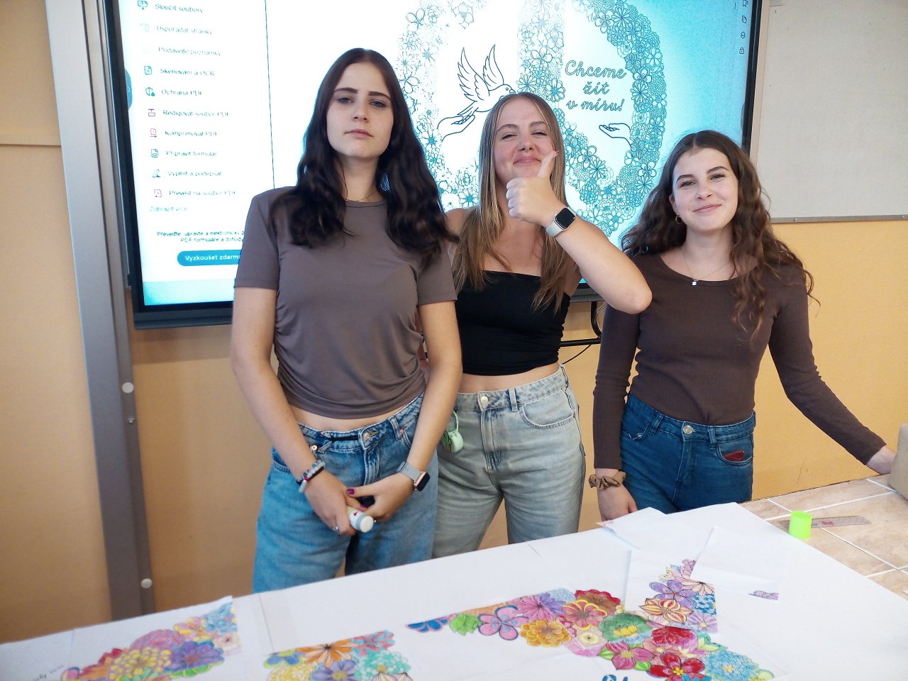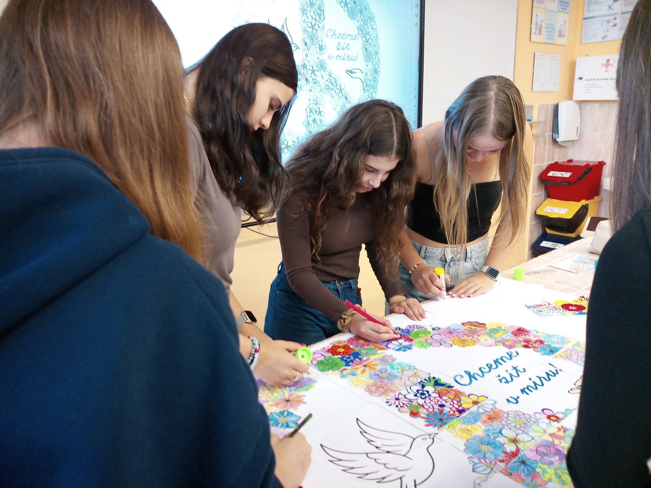 V rámci VkZ se zapojili do několika aktivit. Nejdříve společně vymalovali a potom složili velký kooperativní obrázek symbolizující mír, který nyní zdobí chodbu školy jako připomínka toho, že každý z nás může přispět k lepšímu světu.
