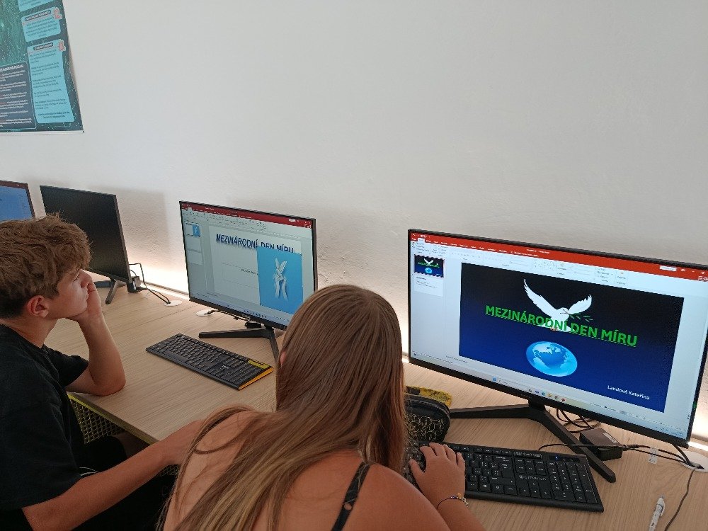 V hodinách VkO se věnovali tvorbě prezentací na téma mír ve světě – nejen z historického pohledu, ale i v souvislosti s aktuálním děním. Žáci diskutovali o důležitosti mírového soužití a zamýšleli se nad tím, co pro ně samotné mír znamená.