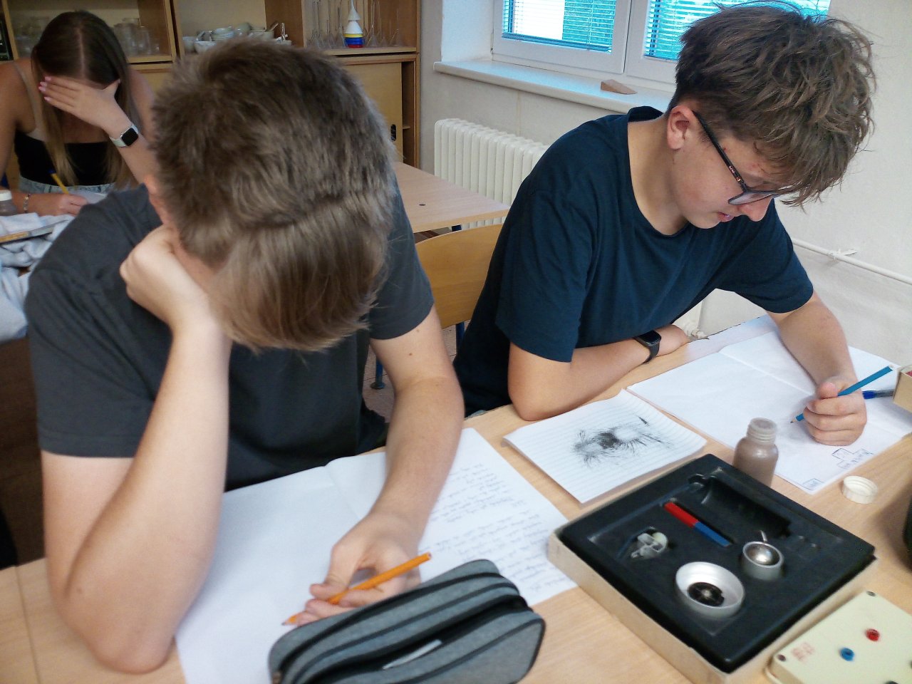 Datum: 24. 9. 2025Žáci 9. třídy si během hodiny fyziky prakticky zopakovali učivo o magnetickém poli. Pomocí magnetů a železných pilin si mohli na vlastní oči prohlédnout, jak vypadá magnetické pole v okolí tyčového magnetu.