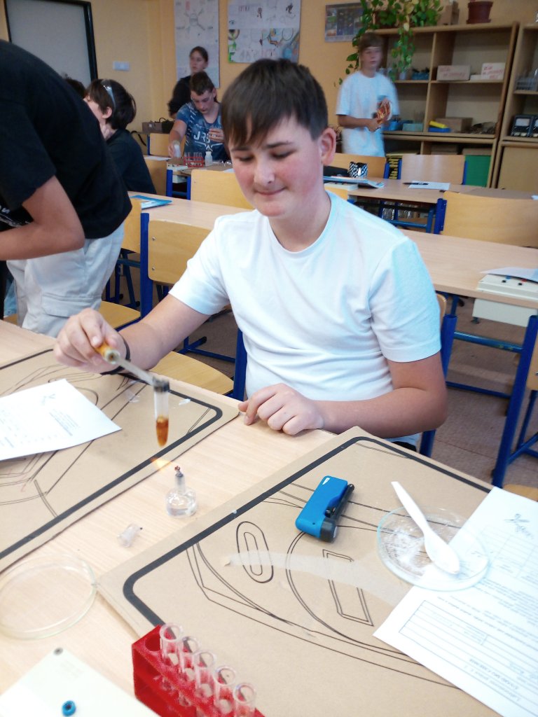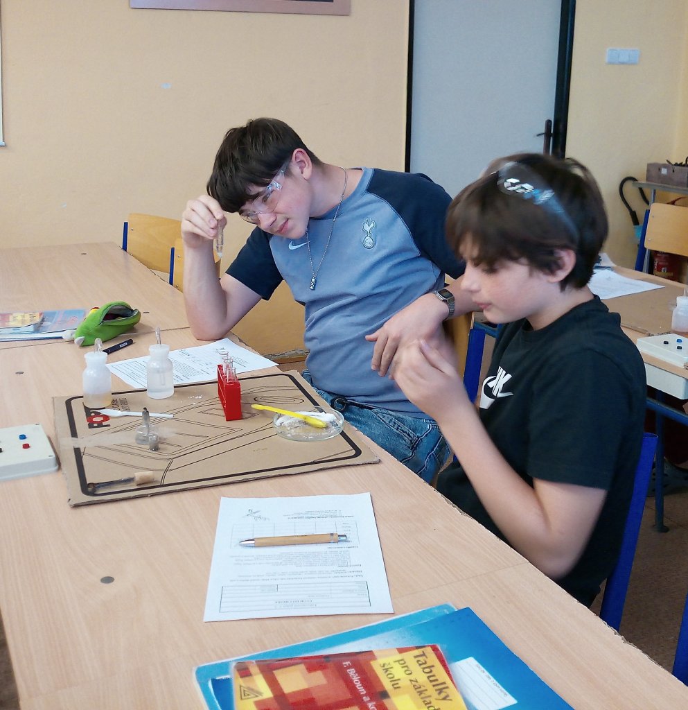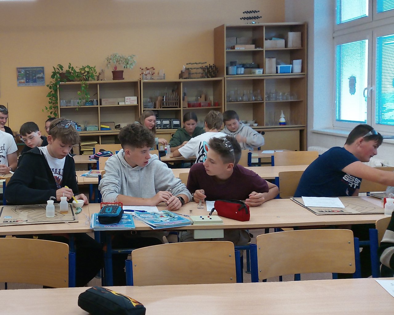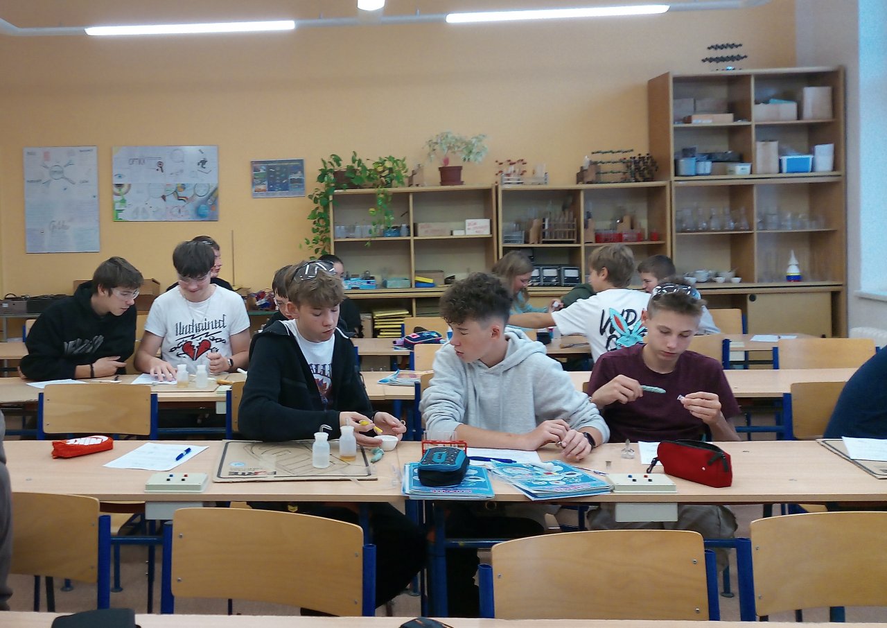 Datum: 27. 9. 2025V hodinách chemie se žáci 8. třídy proměnili v mladé vědce. Během praktické výuky zkoumali různé vlastnosti látek a prováděli jednoduché, ale zajímavé pokusy.