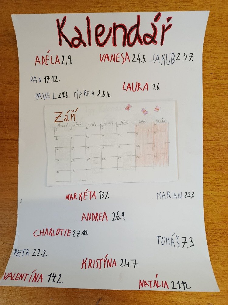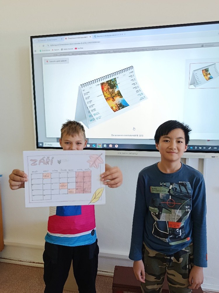Datum: 27. 9. 2025V hodině výchovy k občanství jsme se se sedmáky pustili do netradičního zkoumání kalendáře. Nejprve jsme si společně řekli, co to vlastně kalendář je, k čemu slouží a jak nám pomáhá v každodenním životě. Nezůstali jsme ale jen u povídání – žáci dostali za úkol zpracovat vlastní kalendář.