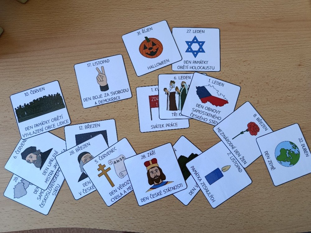 Na závěr jsme si zahráli hru: každý si vylosoval kartičku s určitým dnem nebo svátkem a potom se všichni společně museli „seřadit“ do správného pořadí, aby vytvořili živý kalendář. Nešlo jen o zábavu, ale i o spolupráci, orientaci v čase a pochopení významu jednotlivých dnů.