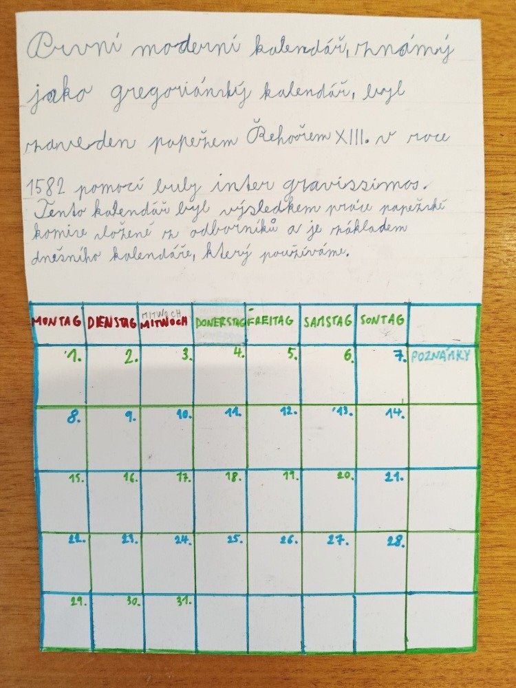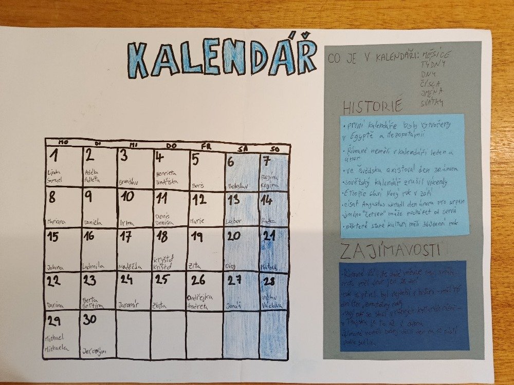 Pomocí tabletů vyhledávali žáci informace o tom, co všechno kalendář obsahuje, a také se ponořili do jeho historie – kde a jak vůbec vznikl, jak se v průběhu času vyvíjel. Díky tomu jsme se mohli propojit i s dějepisem a ukázat si, jak se minulost odráží v našich každodenních zvyklostech.