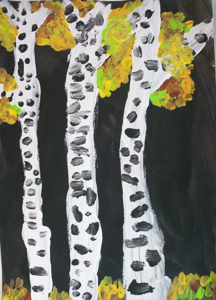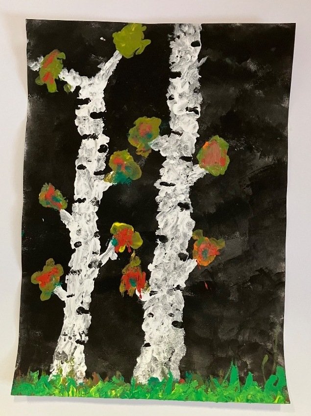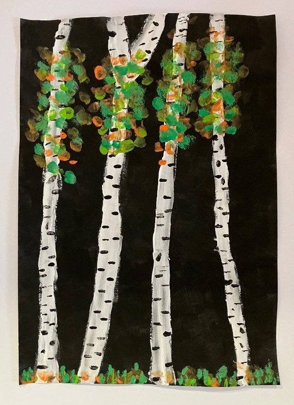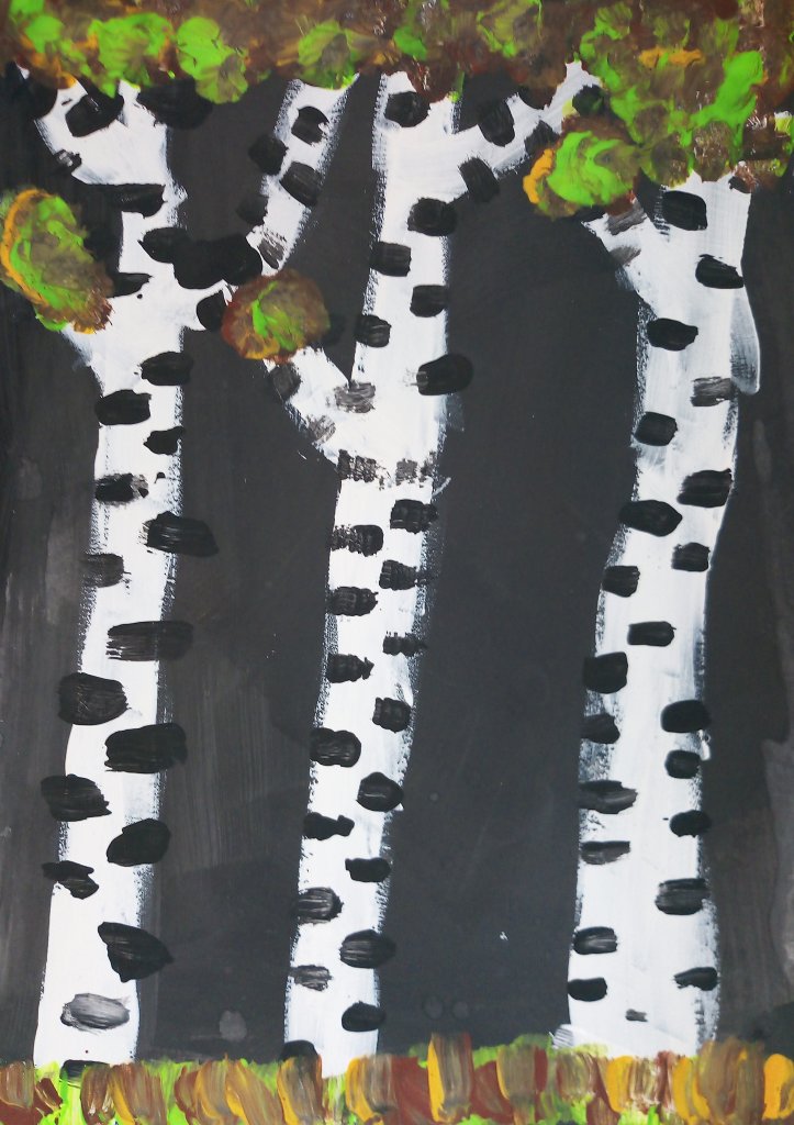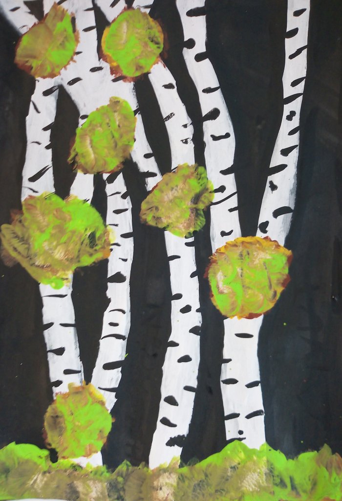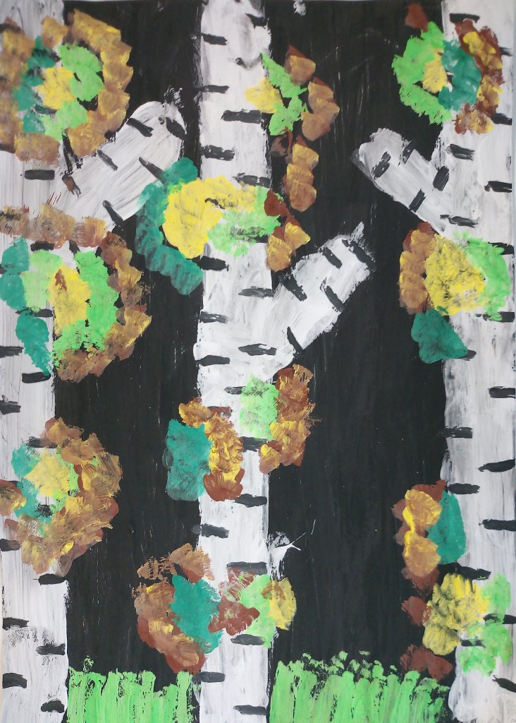 Datum: 1. 10. 2025Na podzim se nádherně vybarvuje příroda, a právě paleta podzimních barev v přírodě byla inspirací a zároveň námětem v hodinách výtvarné výchovy v 7. a 8. třídě. A kde jinde najít pestrou škálu barev než na stromech? A tak se žáci zaměřili na malbu stromů, přičemž kladli důraz na barevný kontrast. Základem bylo tmavé pozadí, do kterého mladí umělci namalovali kmeny břízy, jejichž bílá barva kůry na černém podkladu hezky vynikla. Celkový dojem obrazu žáci doplnili technikou tzv. tupování - touto technikou přimalovali pestrobarevné listy a umělecké dílo bylo na světě!