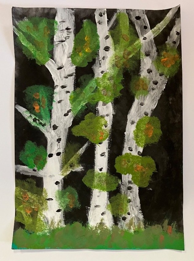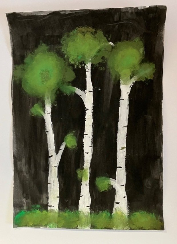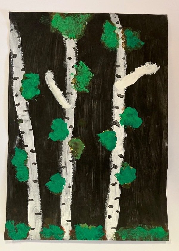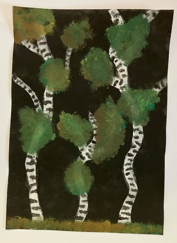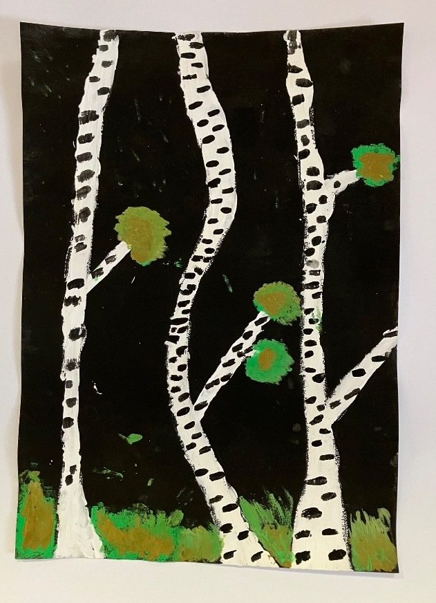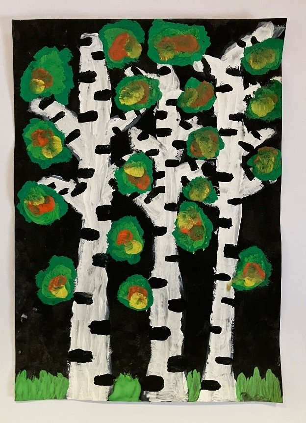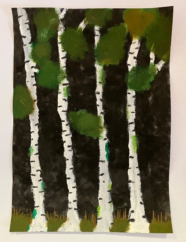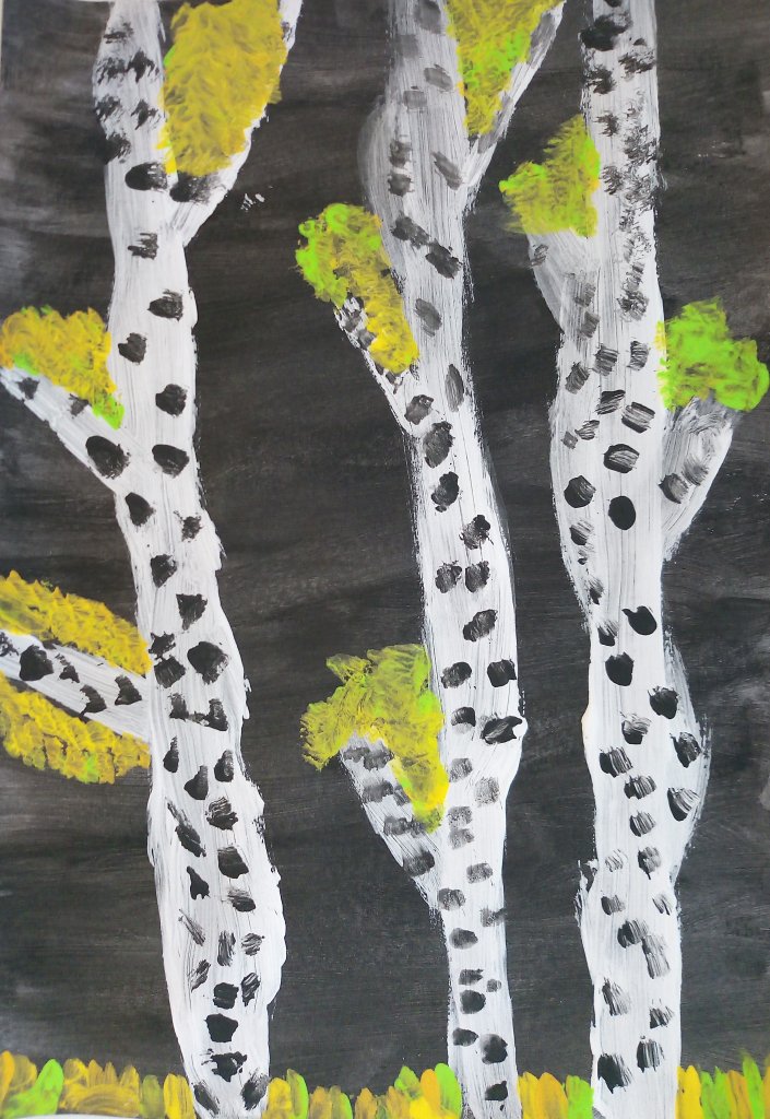 Datum: 1. 10. 2025Na podzim se nádherně vybarvuje příroda, a právě paleta podzimních barev v přírodě byla inspirací a zároveň námětem v hodinách výtvarné výchovy v 7. a 8. třídě. A kde jinde najít pestrou škálu barev než na stromech? A tak se žáci zaměřili na malbu stromů, přičemž kladli důraz na barevný kontrast. Základem bylo tmavé pozadí, do kterého mladí umělci namalovali kmeny břízy, jejichž bílá barva kůry na černém podkladu hezky vynikla. Celkový dojem obrazu žáci doplnili technikou tzv. tupování - touto technikou přimalovali pestrobarevné listy a umělecké dílo bylo na světě!