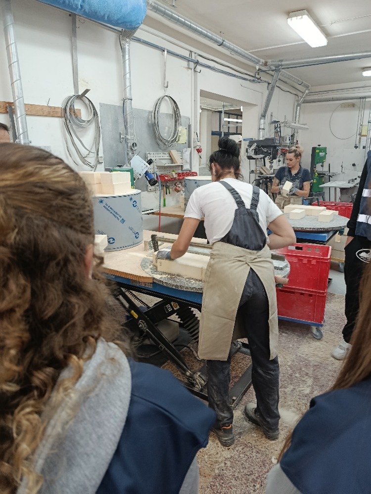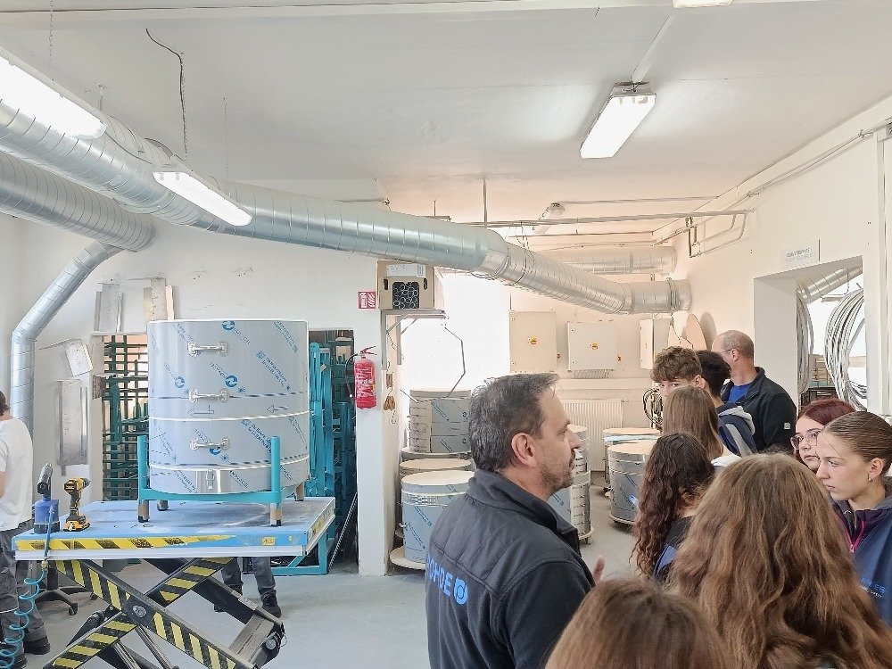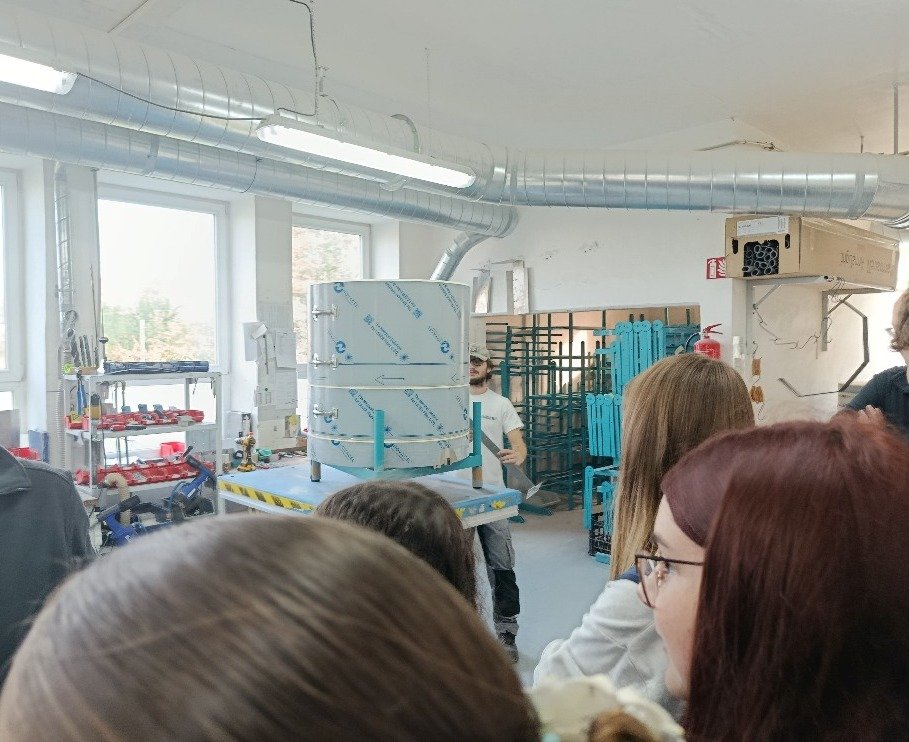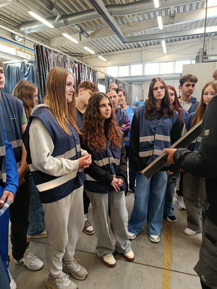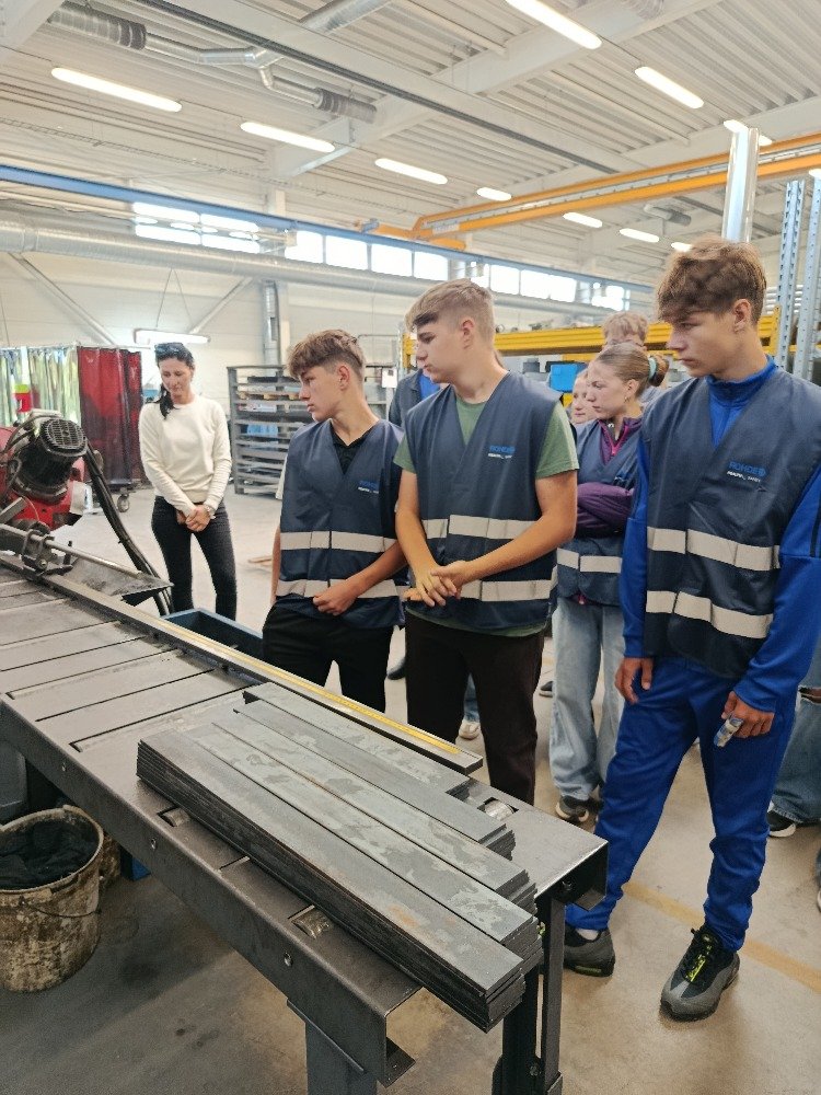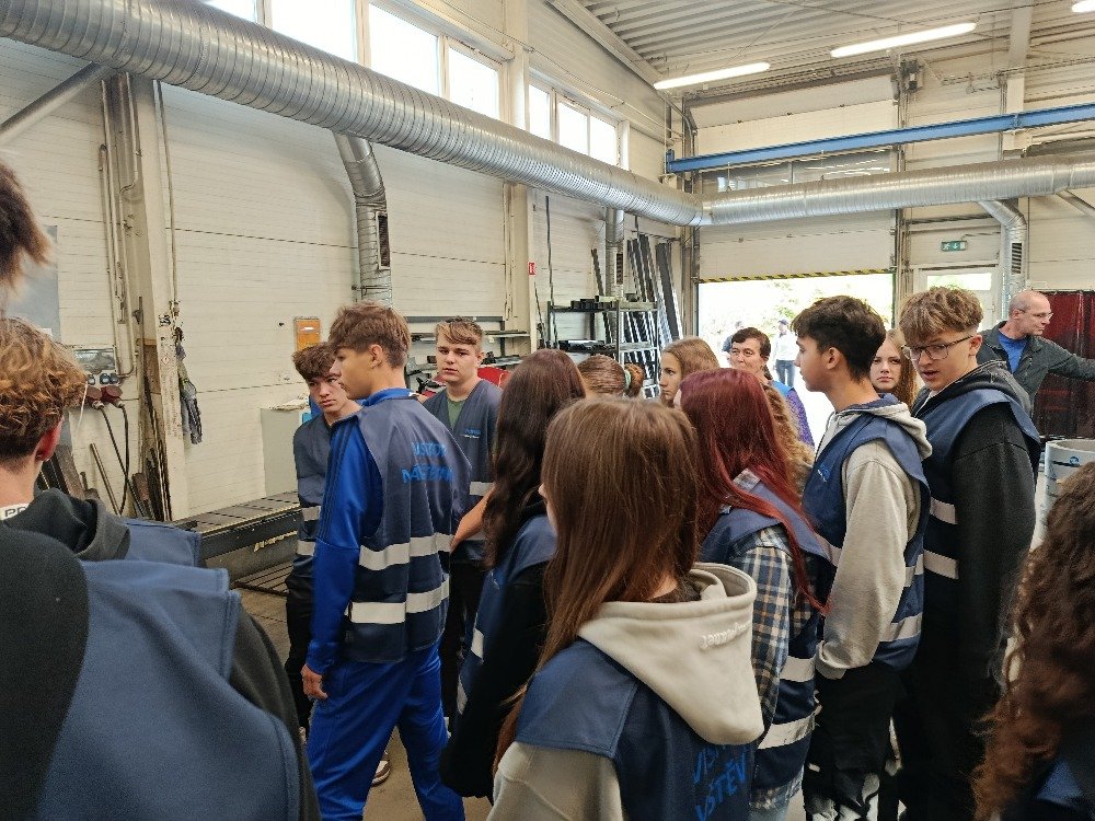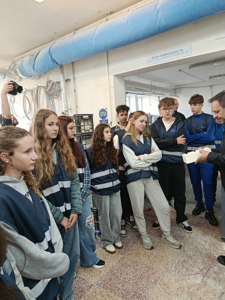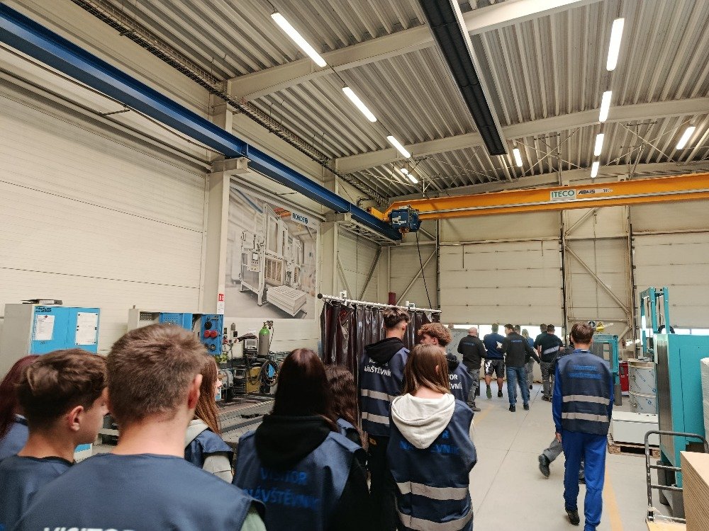Součástí exkurze byla i prohlídka výrobních prostor, kde jsme mohli vidět různé pracovní pozice v praxi –zámečníky, svářeče, montéry, elektrikáře,…. Bylo velmi zajímavé sledovat, jak se spojují ruční práce s moderní technikou a jak precizně je potřeba každý krok provádět.