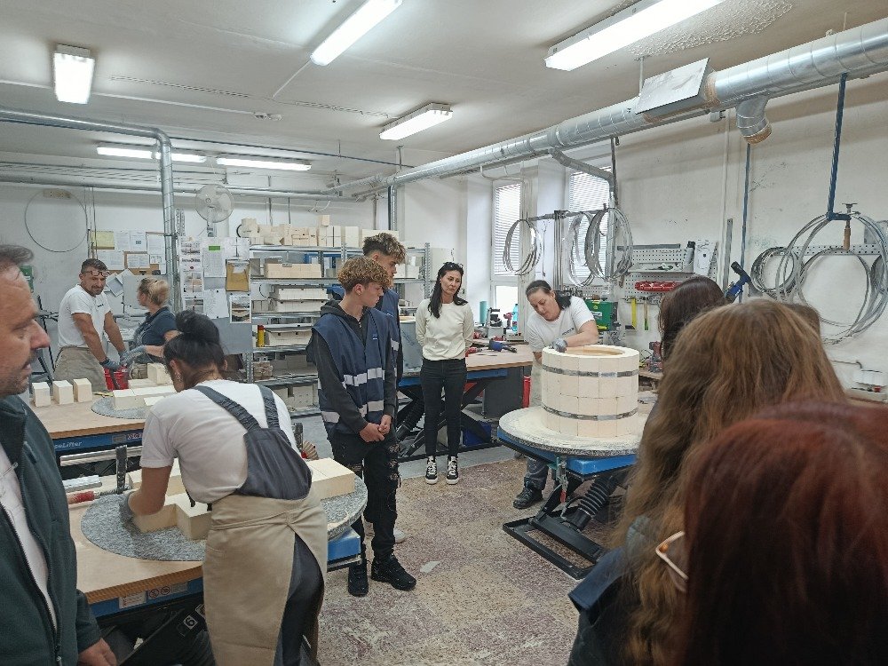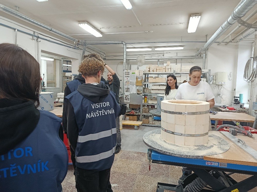 Po úvodním přivítání jsme se během prezentace seznámili s historií firmy, která má dlouholetou tradici v oblasti technologií pro umělecké i průmyslové využití. Následně nám byl představen celý výrobní proces – od návrhu a plánování, přes samotnou výrobu jednotlivých dílů, až po finální montáž a testování hotových pecí.