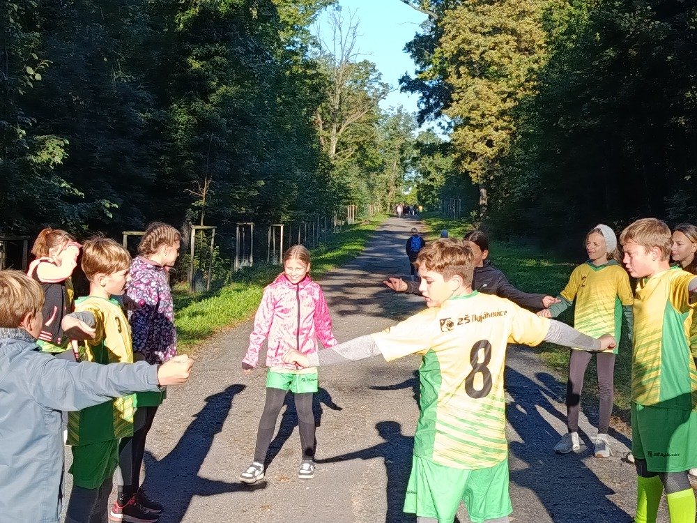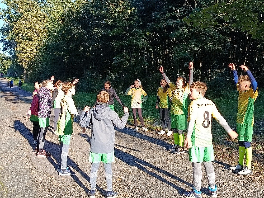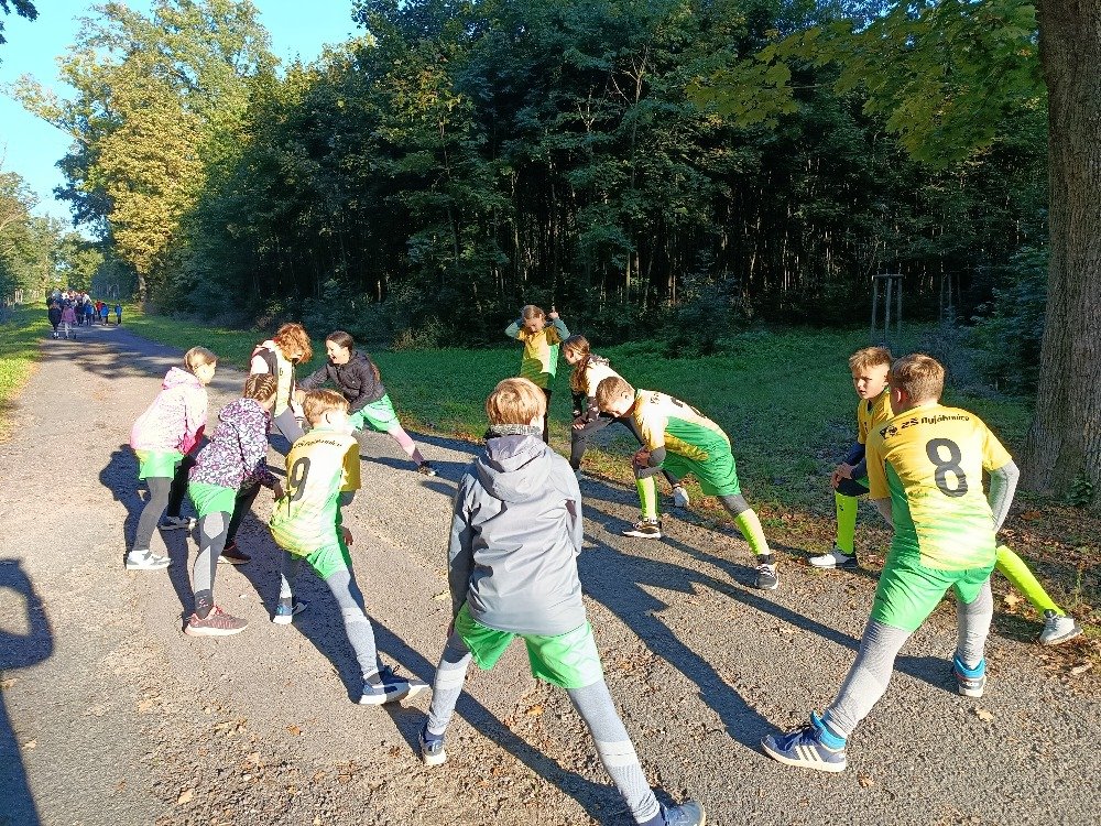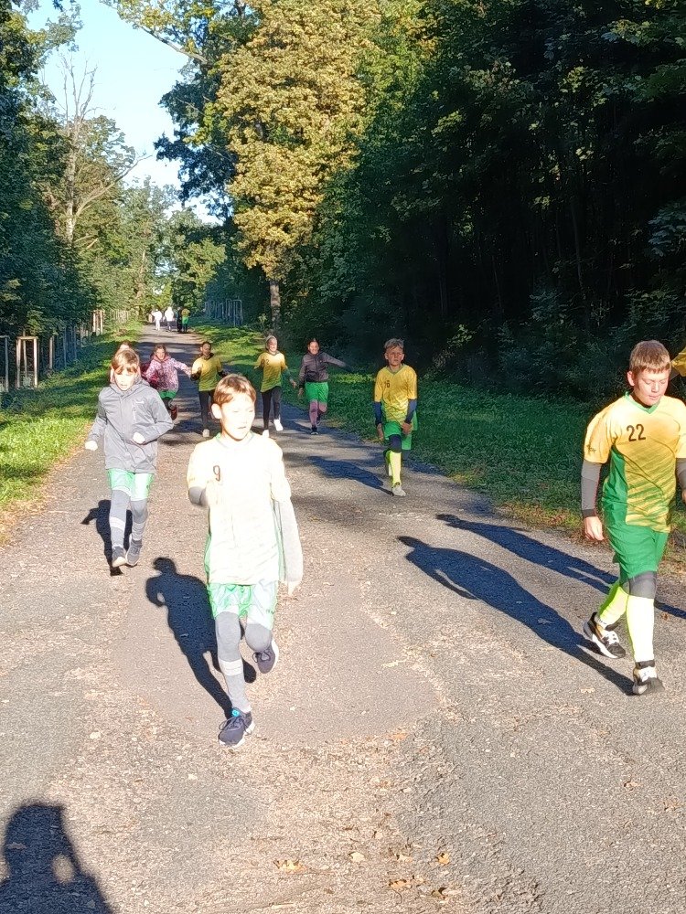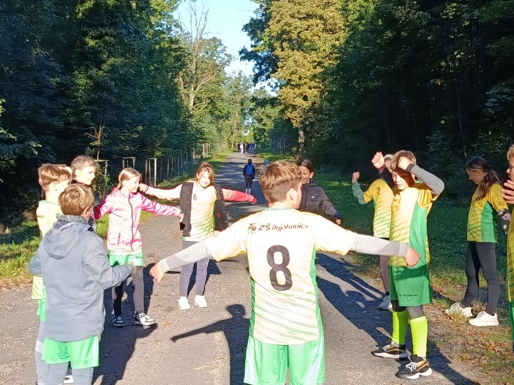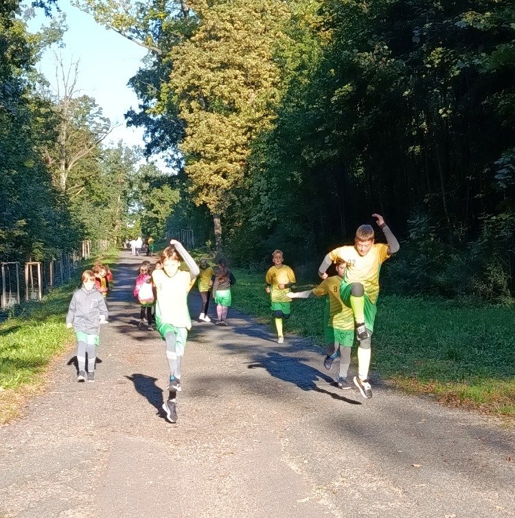Před samotným závodem nechybělo důkladné rozcvičení. Mladí běžci si protáhli svaly, připravili tělo na výkon a společně se psychicky naladili na nadcházející závod.