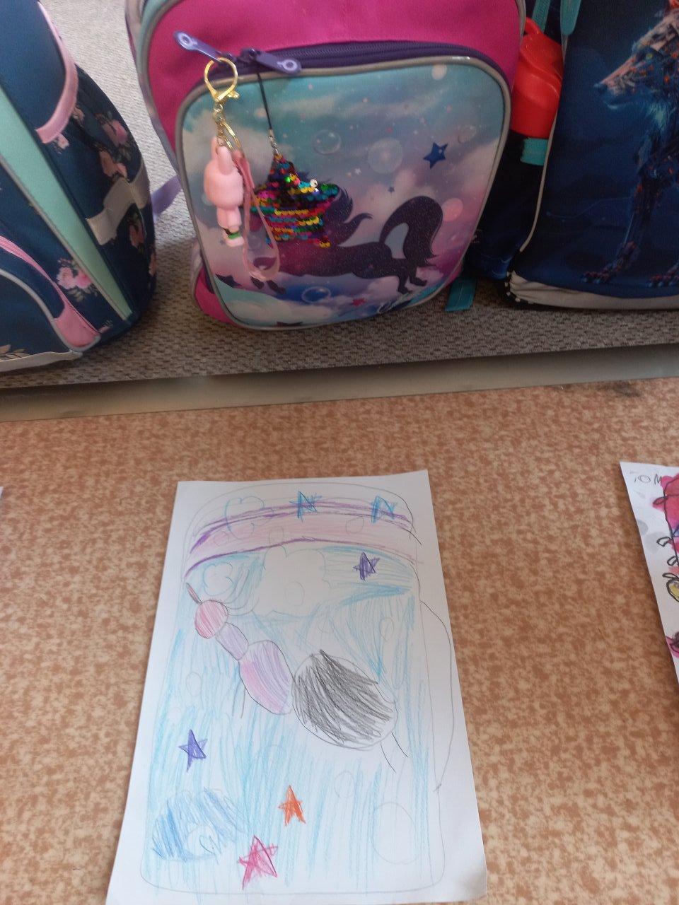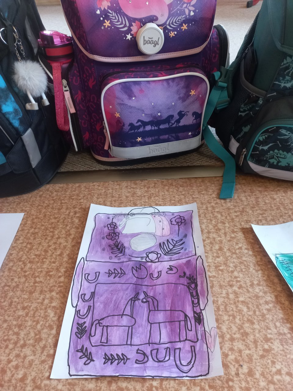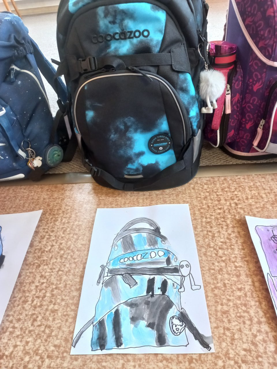 Každá kresba byla jedinečná. Během tvoření děti také vyprávěly, co všechno si do aktovky nosí, a jaký poklad se v ní občas „ztratí“.