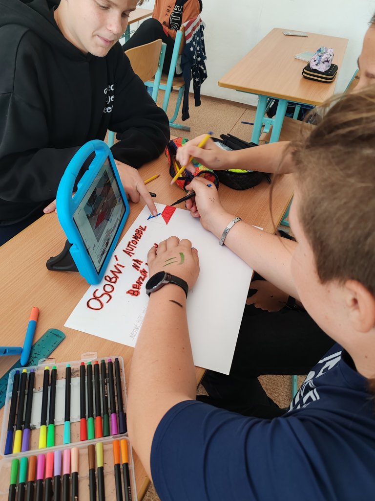 Na úvod proběhla společná diskuze o různých druzích dopravy – od aut a autobusů přes kola, vlaky až po letadla. Žáci sdíleli své zkušenosti, názory i postřehy o tom, jak cestují oni sami a jejich rodiny.