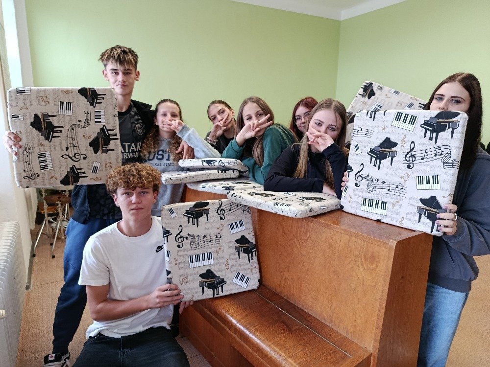 Velké poděkování patří paní Radce Vlasákové, která tyto krásné podsedáky zhotovila. Její šikovnost a cit pro detail nám udělaly velkou radost – Skill zóna je teď ještě pohodlnější a inspirativnější místo pro všechny malé i velké žáky.