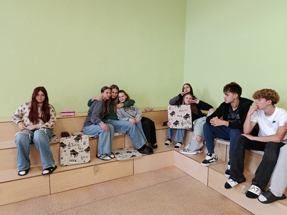 Datum: 10. 10. 2025Naše oblíbená Skill zóna prošla malou, ale výraznou proměnou. Nově je vybavena barevnými podsedáky s hudebním motivem, které nejen zútulnily prostor, ale také podtrhly jeho kreativní atmosféru.
