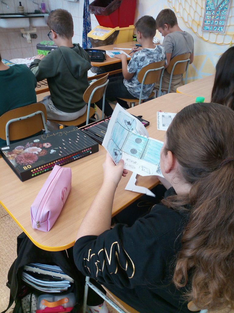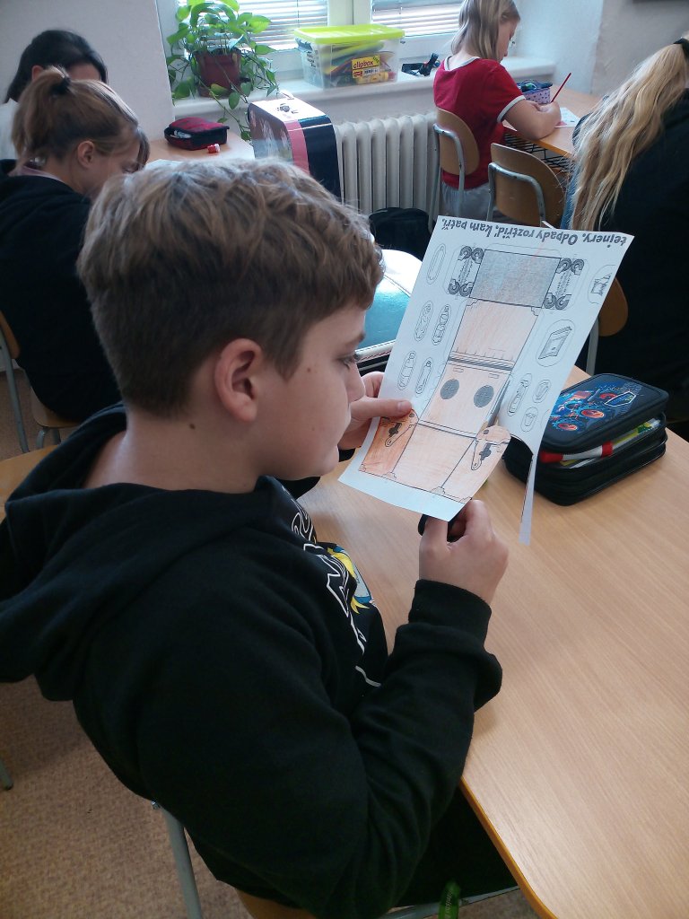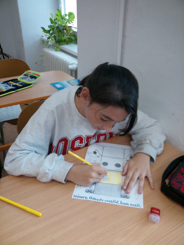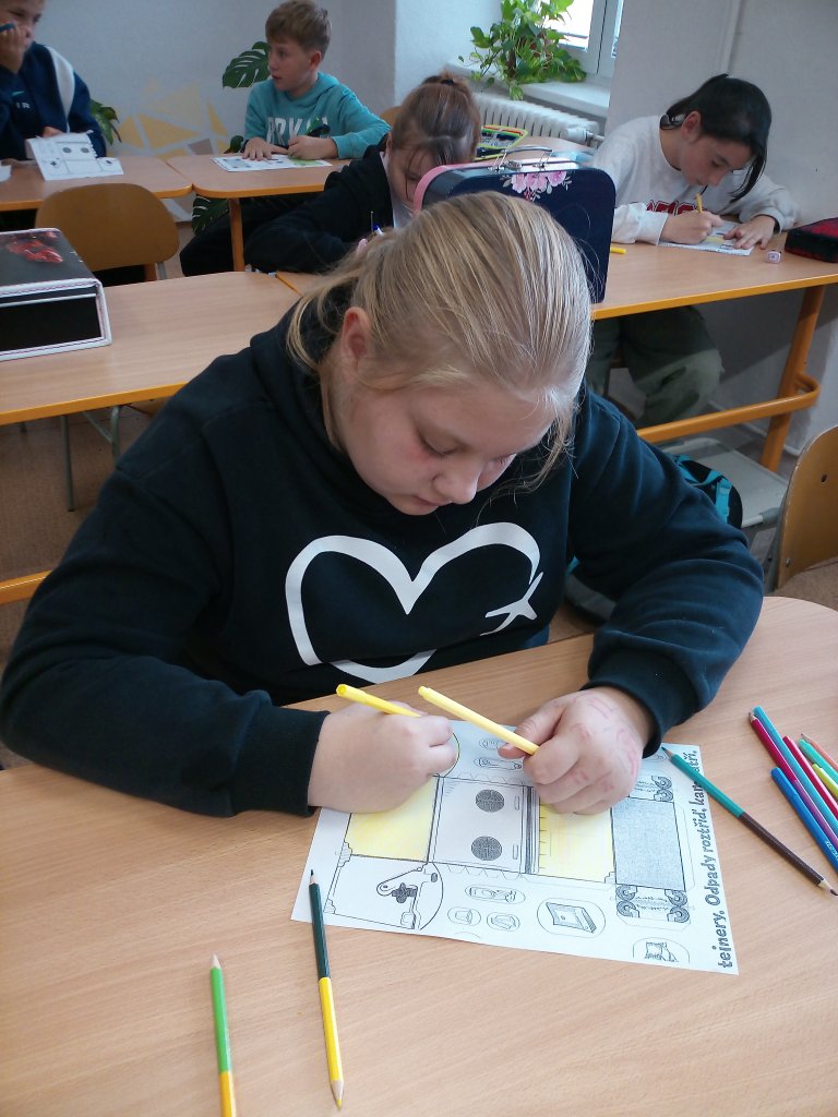Nejprve si každý žák vybarvil a sestavil model popelnice, což byla nejen kreativní činnost, ale i skvělý způsob, jak si osvojit základní informace o různých typech odpadů a kontejnerech, do kterých patří. Poté následovala práce s pracovním listem, kde děti měly za úkol správně roztřídit odpadky do jednotlivých barevných kontejnerů – papír, plast, sklo, bioodpad a další.