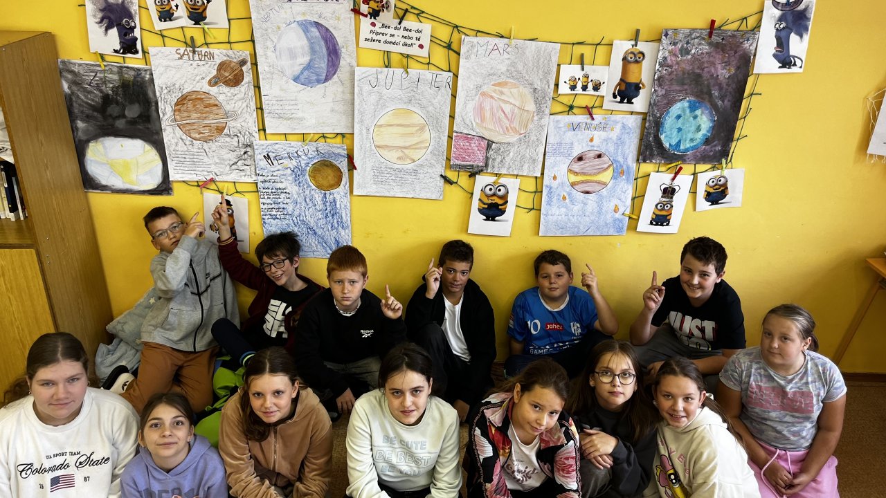 Datum: 13. 10. 2025Žáci páté třídy se nedávno zapojili do zajímavého projektového dne s názvem „Planety sluneční soustavy“. Na začátku dne byli rozděleni do menších skupin, ve kterých si losovali, kterou planetu budou zpracovávat. Každá skupina tak dostala za úkol zjistit co nejvíce informací o své planetě – její velikost, složení, vzdálenost od Slunce, počet měsíců nebo zajímavosti o průzkumu.