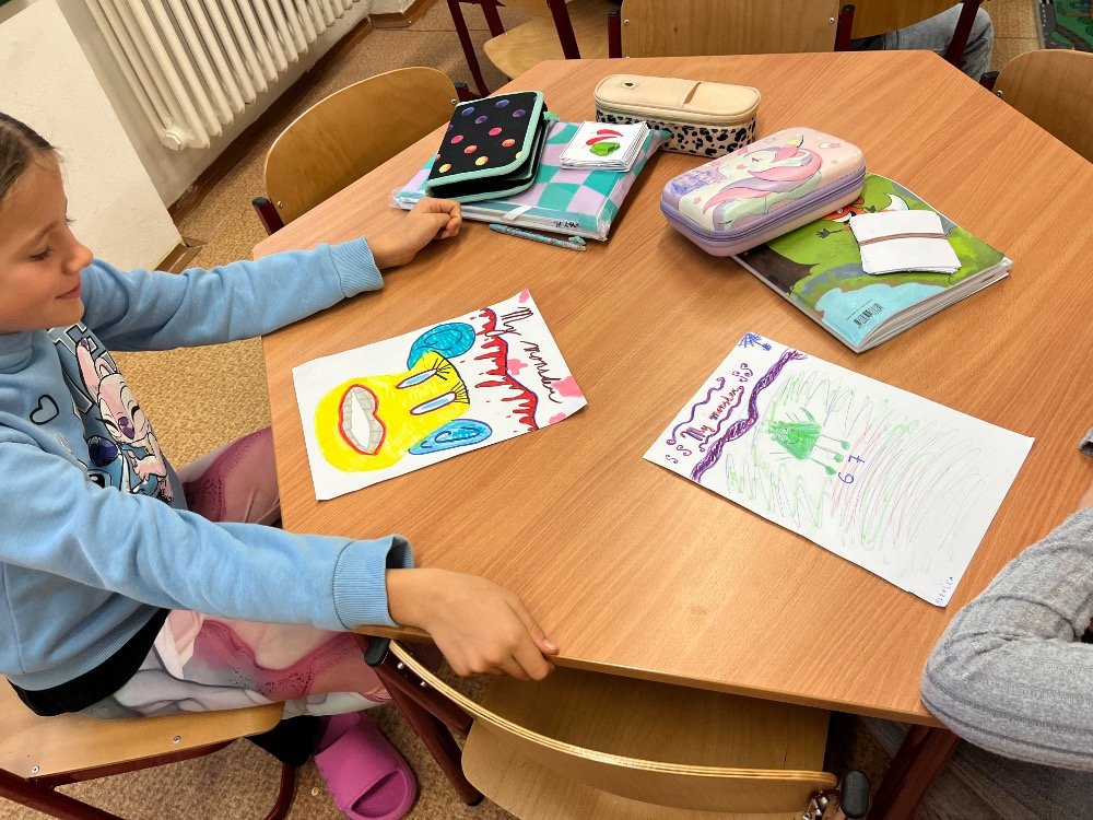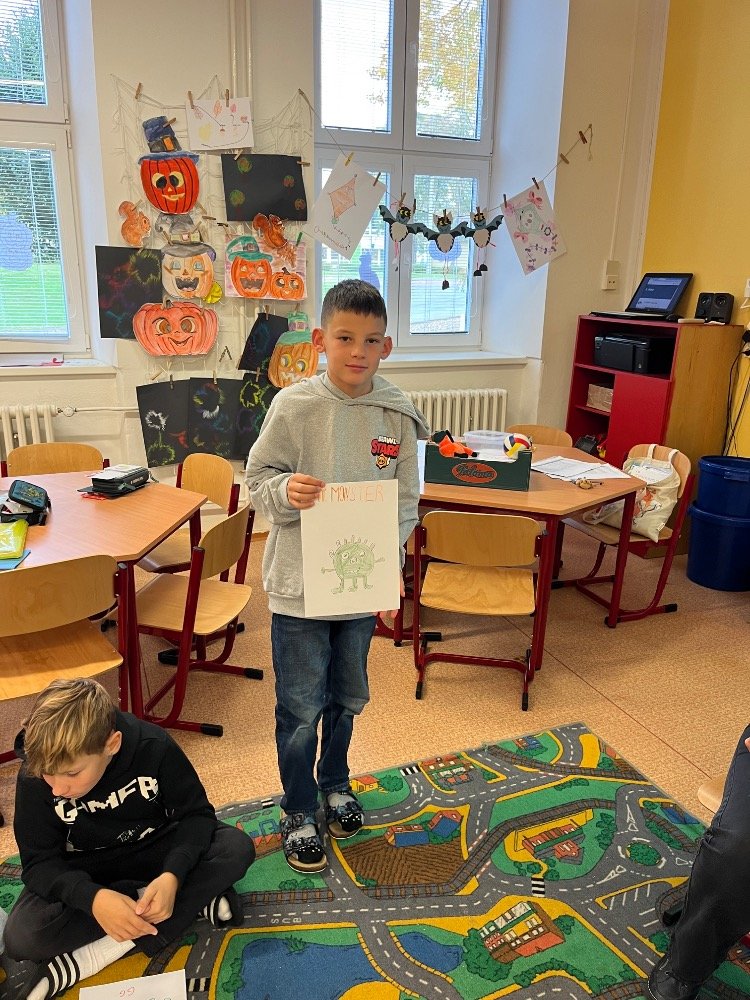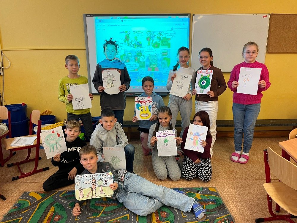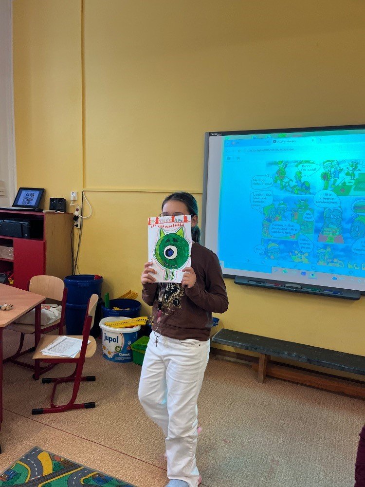 Datum: 15. 10. 2025Žáci 4. třídy si v hodině angličtiny hravou formou procvičovali slovní zásobu na téma části těla. Jejich úkolem bylo nakreslit vlastní příšerku a poté ji představit spolužákům – samozřejmě v angličtině.