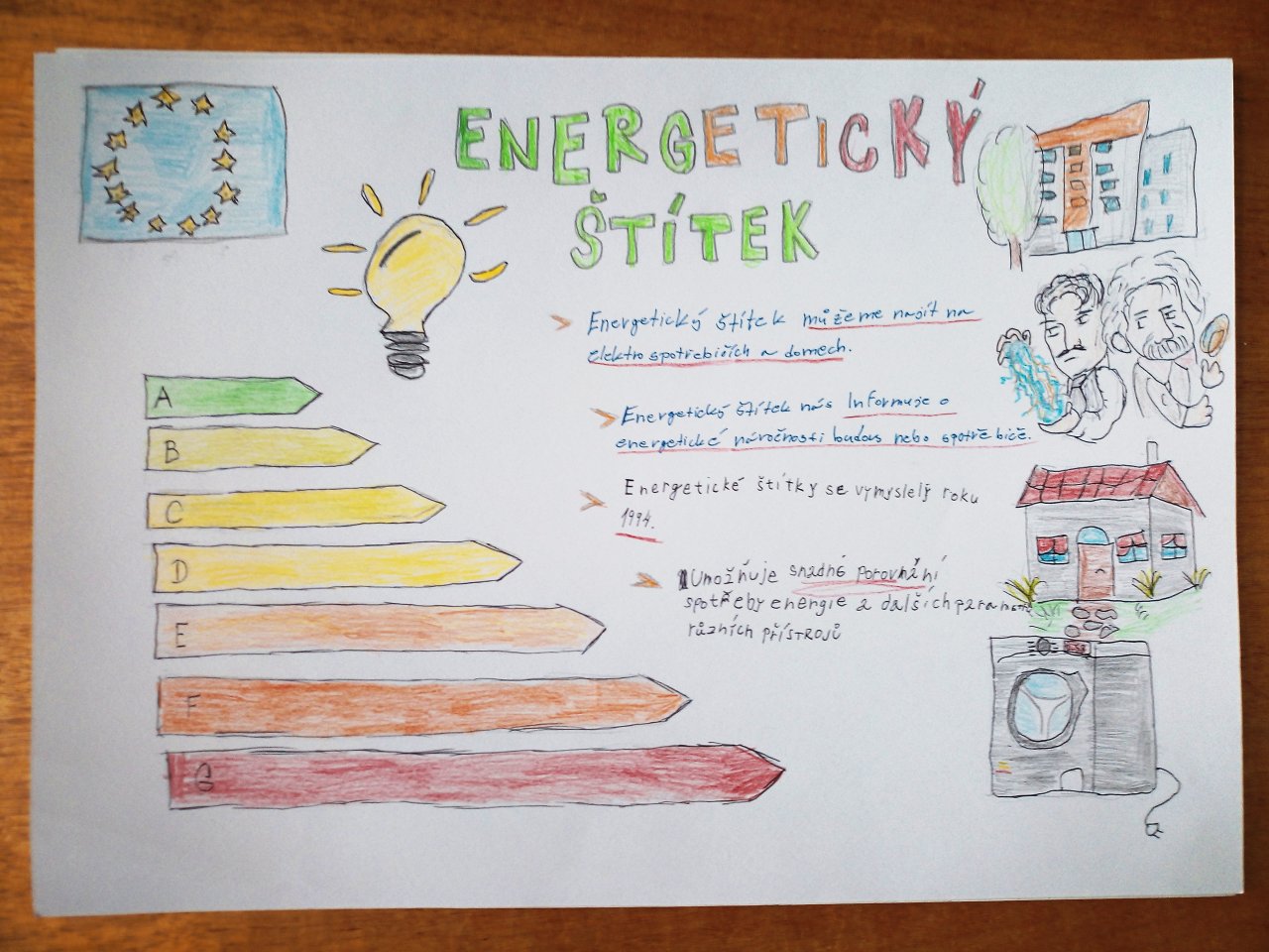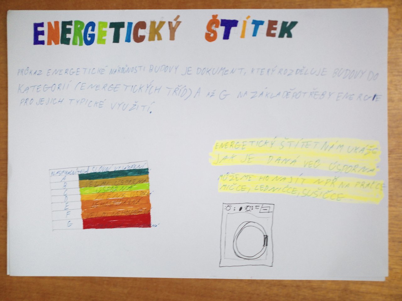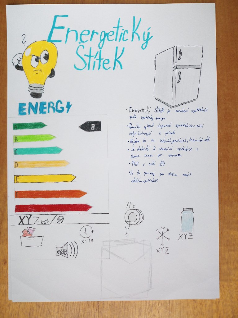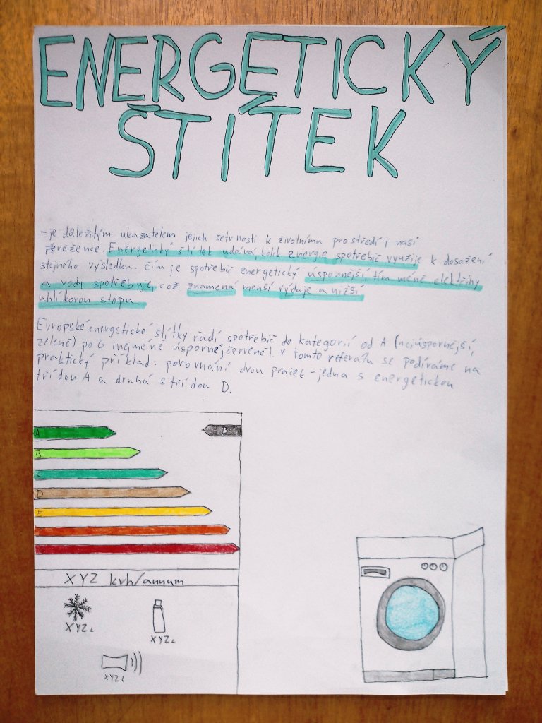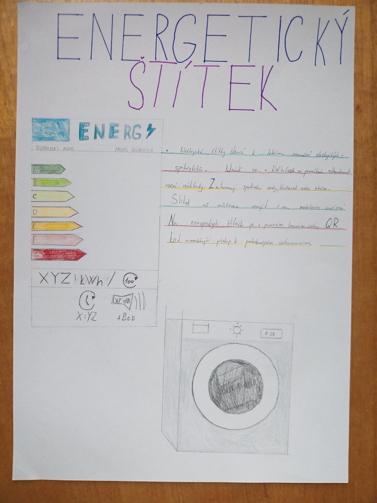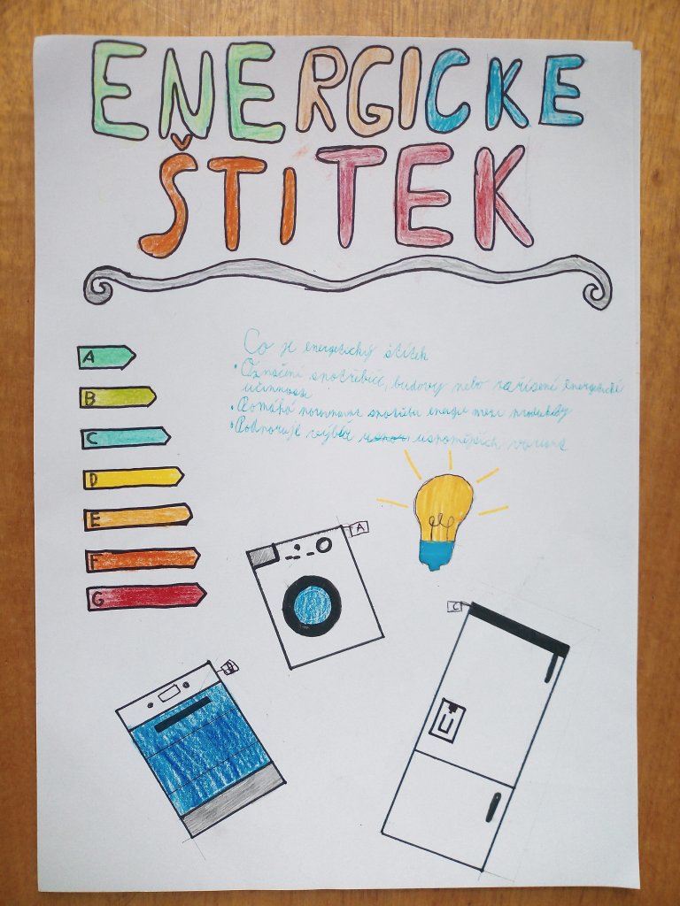 Žáci ve skupinách připravili plakáty, na kterých představili význam energetických tříd a vysvětlili, co jednotlivé symboly a barevné škály na štítcích znamenají.