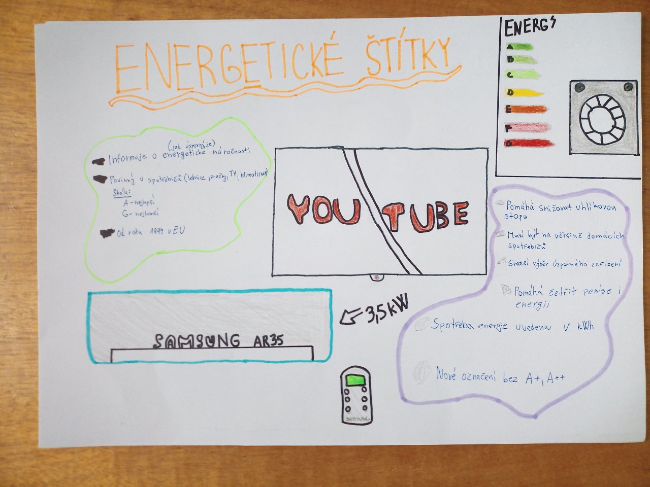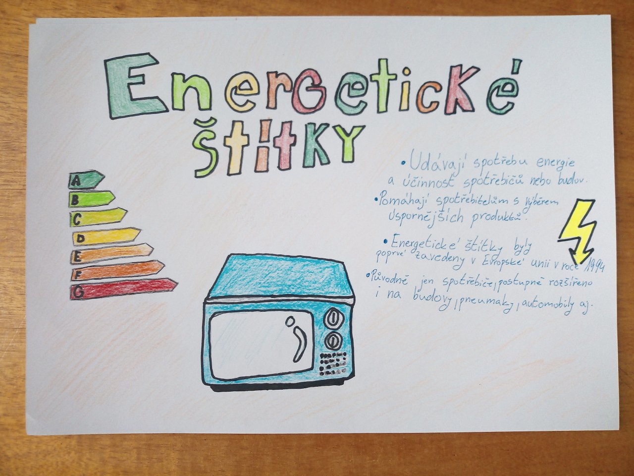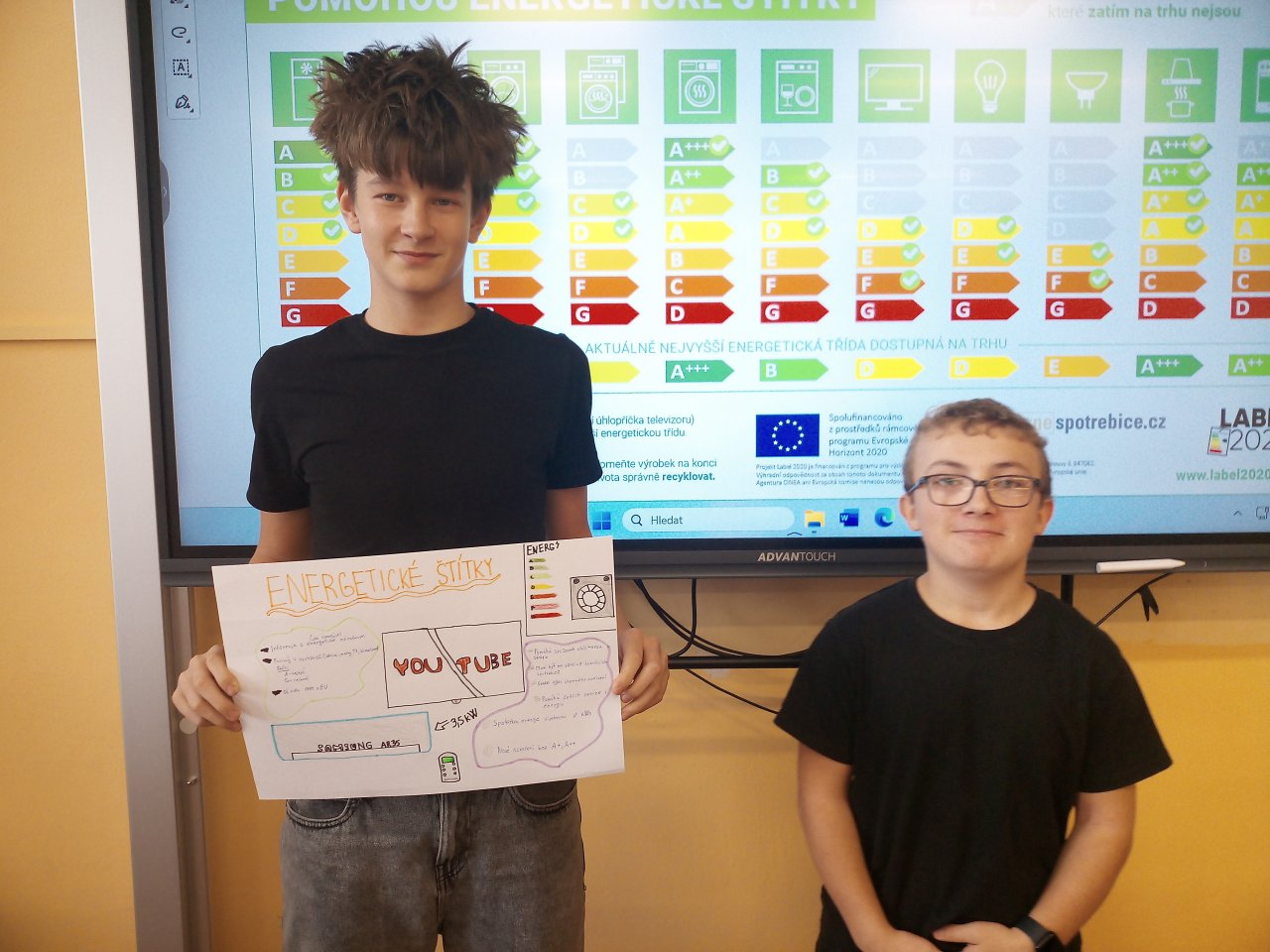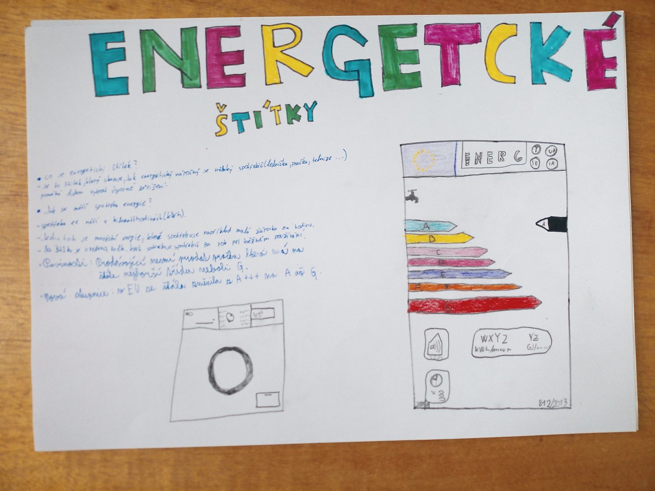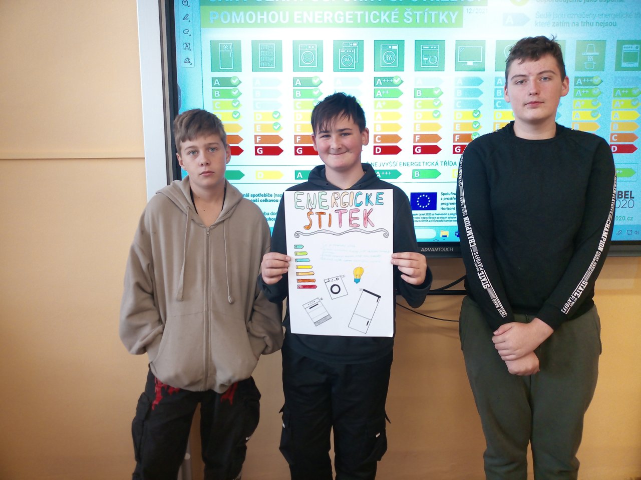 Žáci ve skupinách připravili plakáty, na kterých představili význam energetických tříd a vysvětlili, co jednotlivé symboly a barevné škály na štítcích znamenají.