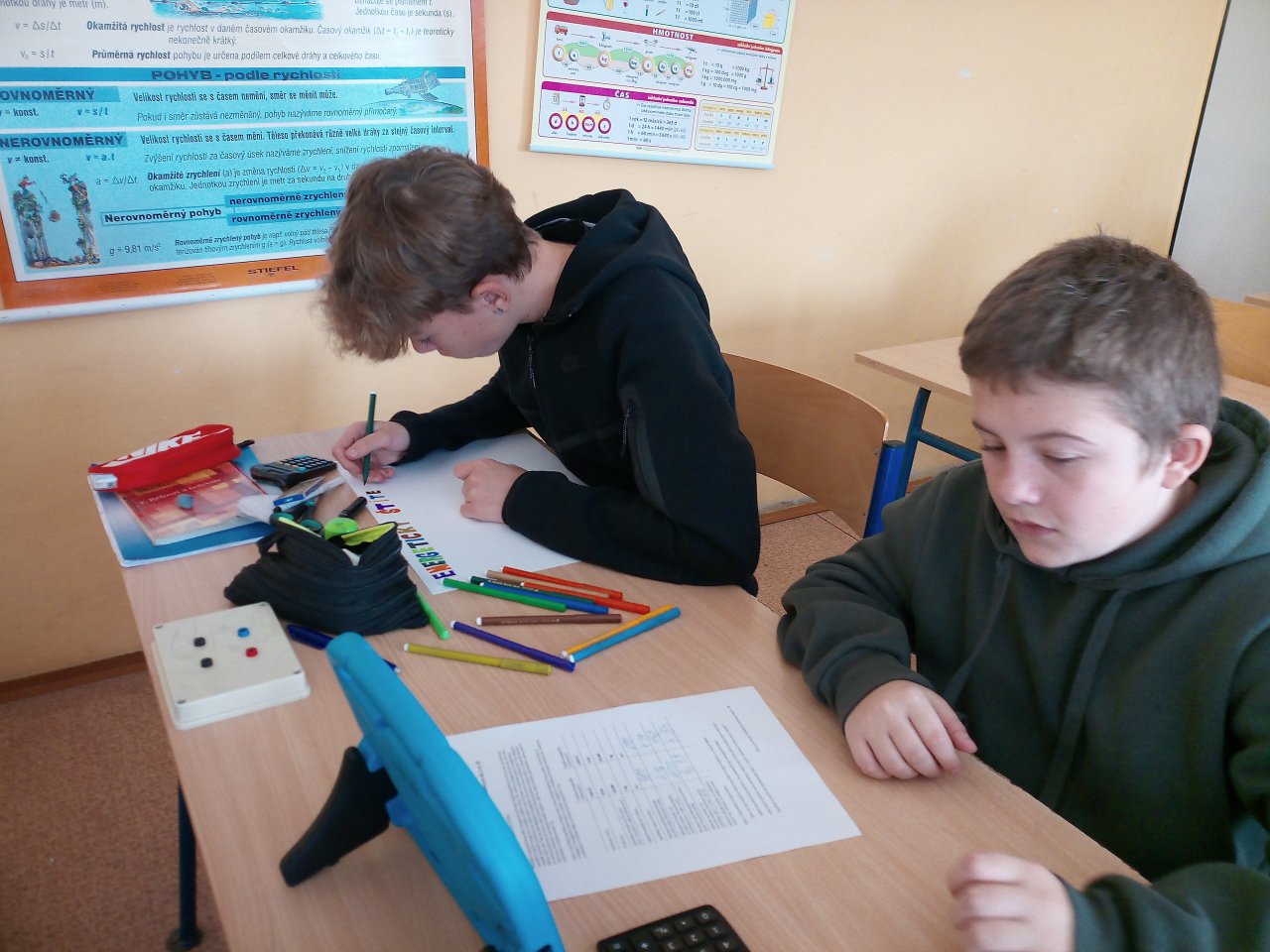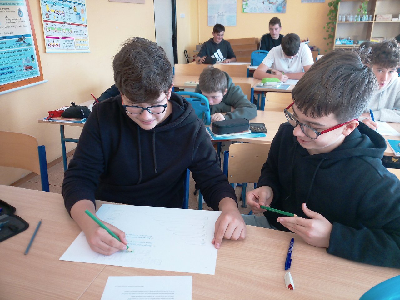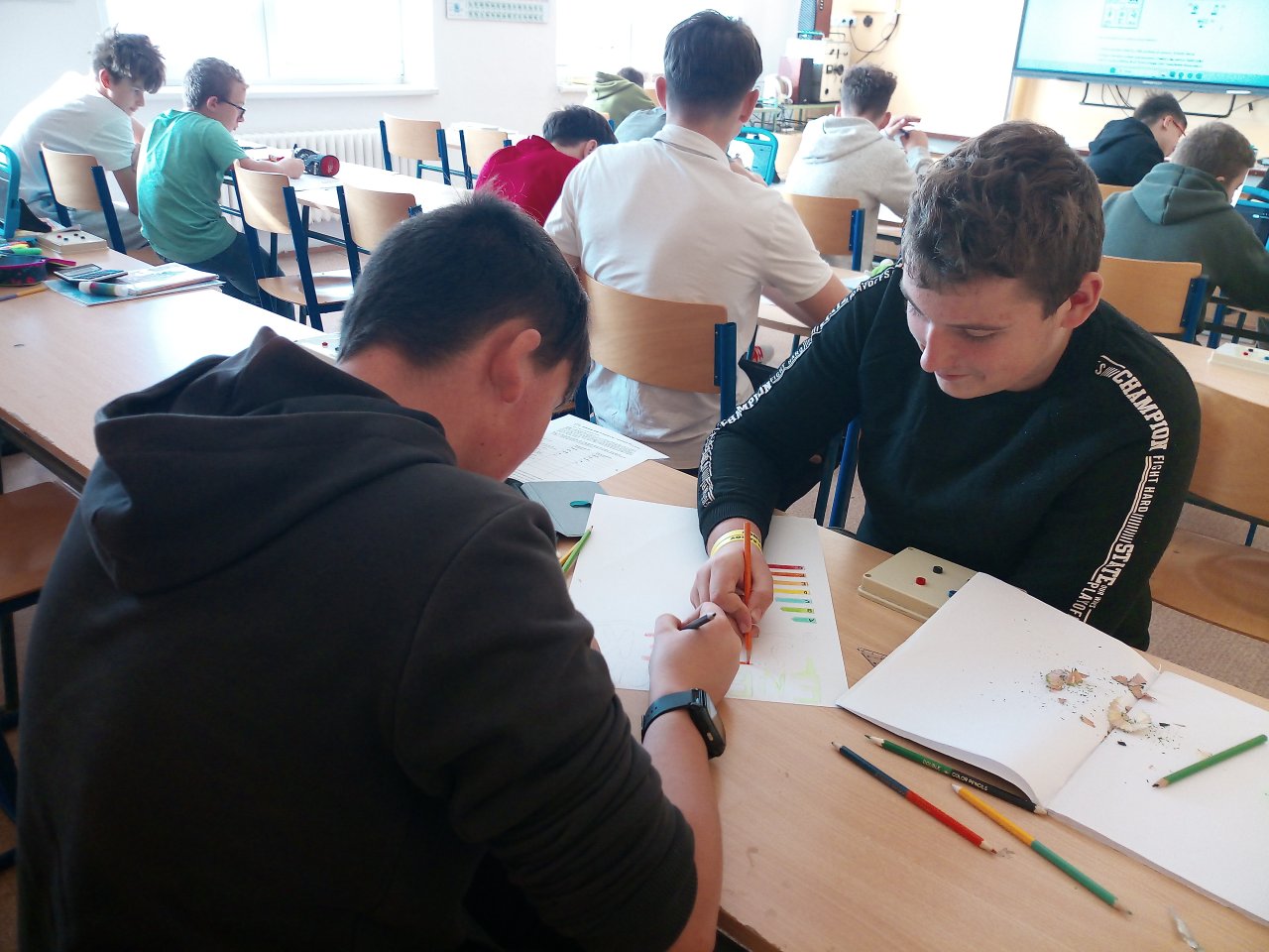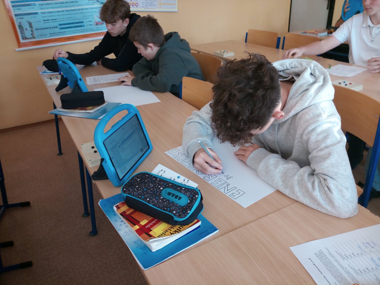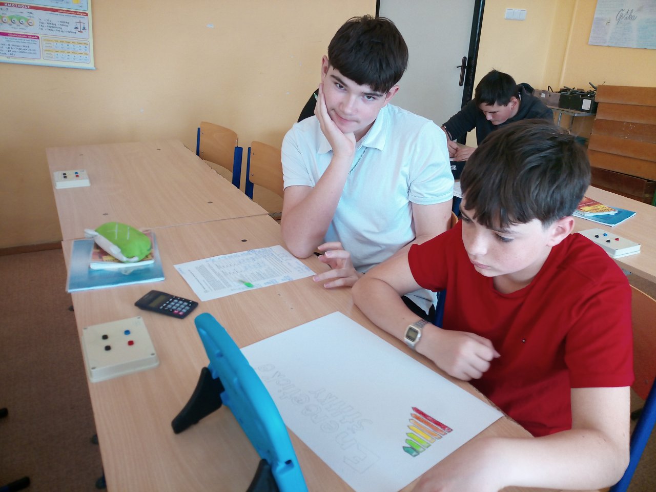 Žáci ve skupinách připravili plakáty, na kterých představili význam energetických tříd a vysvětlili, co jednotlivé symboly a barevné škály na štítcích znamenají.