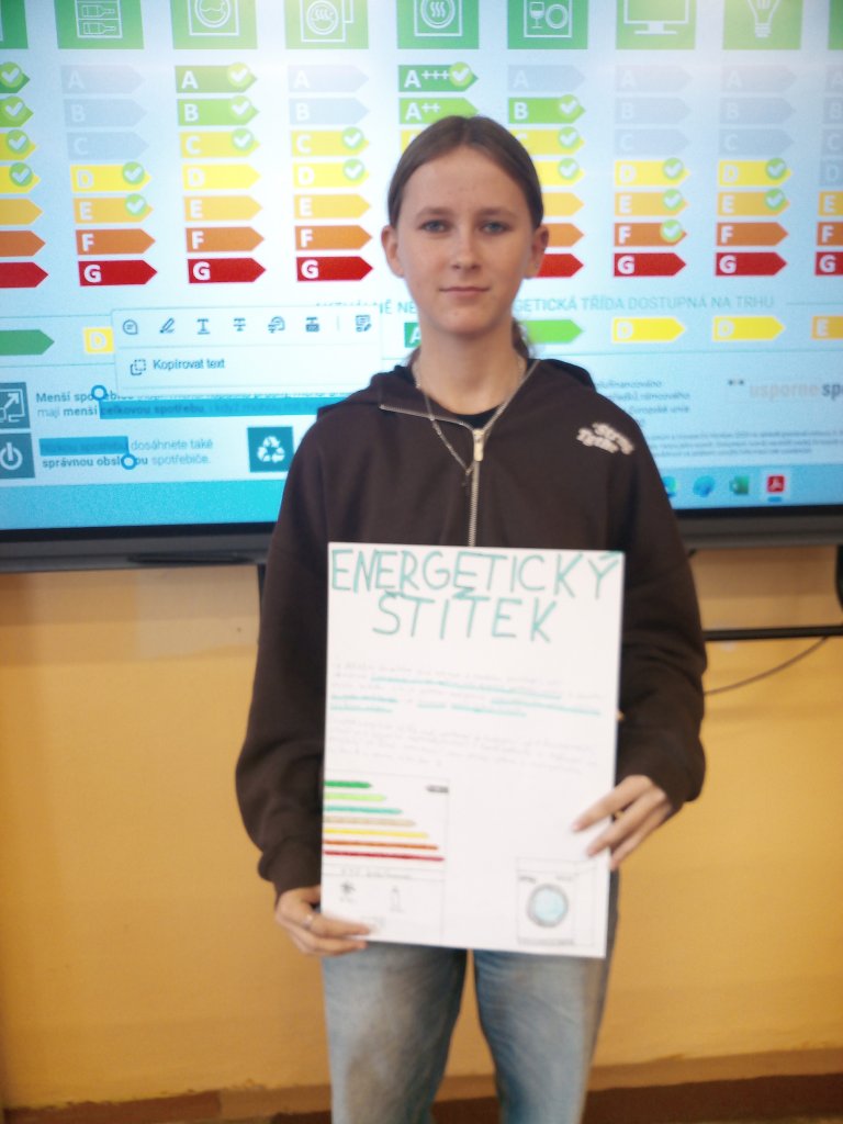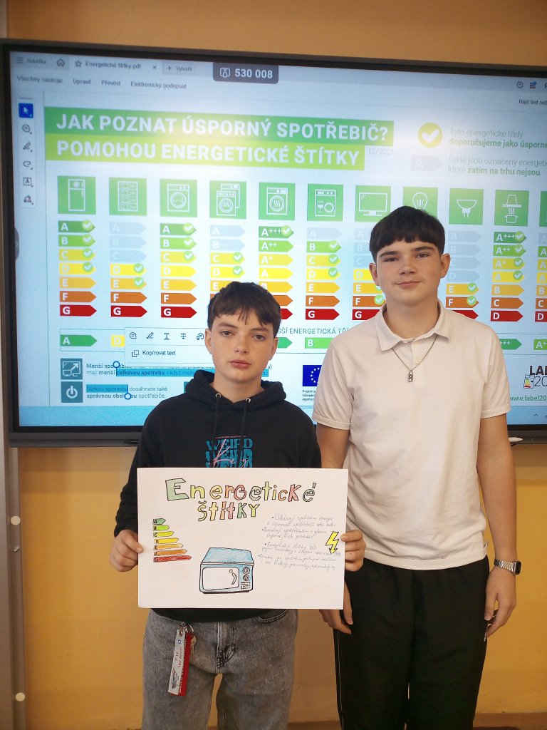 Datum: 15. 10. 2025V hodinách fyziky se žáci osmého ročníku ponořili do praktického tématu: Energetické štítky. Cílem bylo pochopit, jak důležitou roli hraje energetická účinnost spotřebičů v každodenním životě a jak se promítá do reálných finančních nákladů.