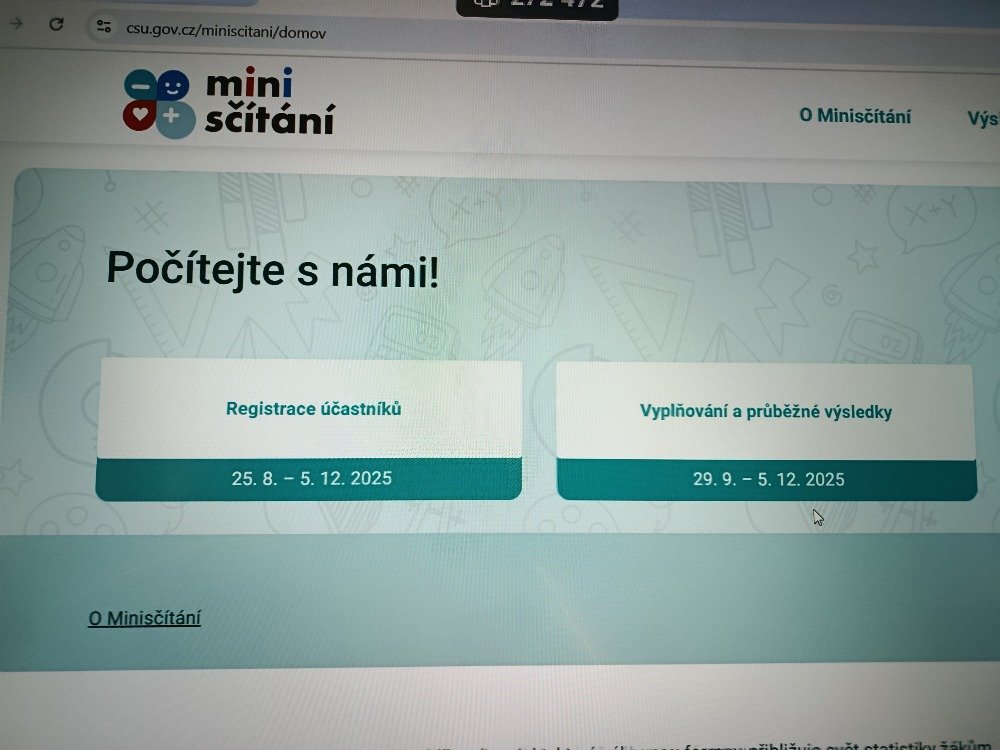 Datum: 17. 10. 2025Letos se postupně žáci 5. až 9. třídy naší školy poprvé zapojí do projektu Minisčítání, který organizuje Český statistický úřad. Tento projekt zábavnou a srozumitelnou formou přibližuje svět čísel a statistiky dětem ve věku 9 až 15 let. Děti si na vlastní kůži vyzkoušejí nejen vyplňování online dotazníku na internetu, ale především porozumějí principům statistiky, naučí se číst v grafech, diskutovat o výsledcích a dozví se jedinečné informace o svých vrstevnících.