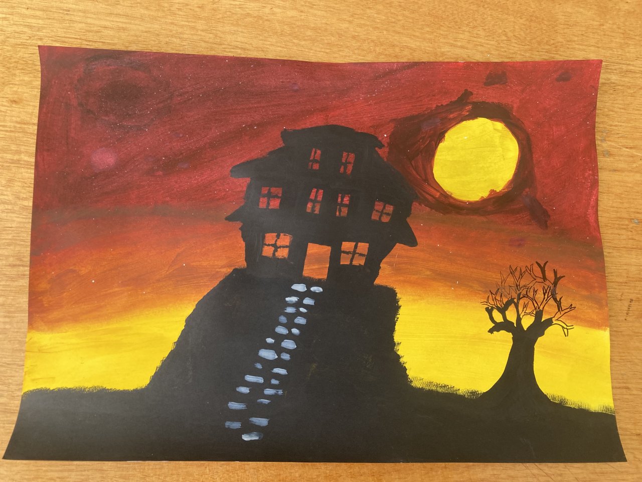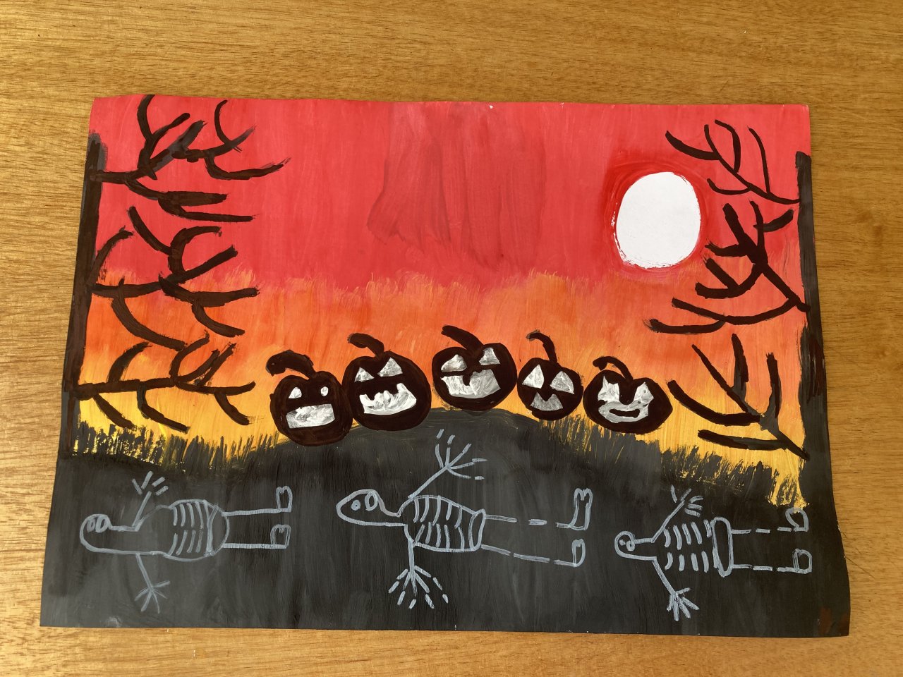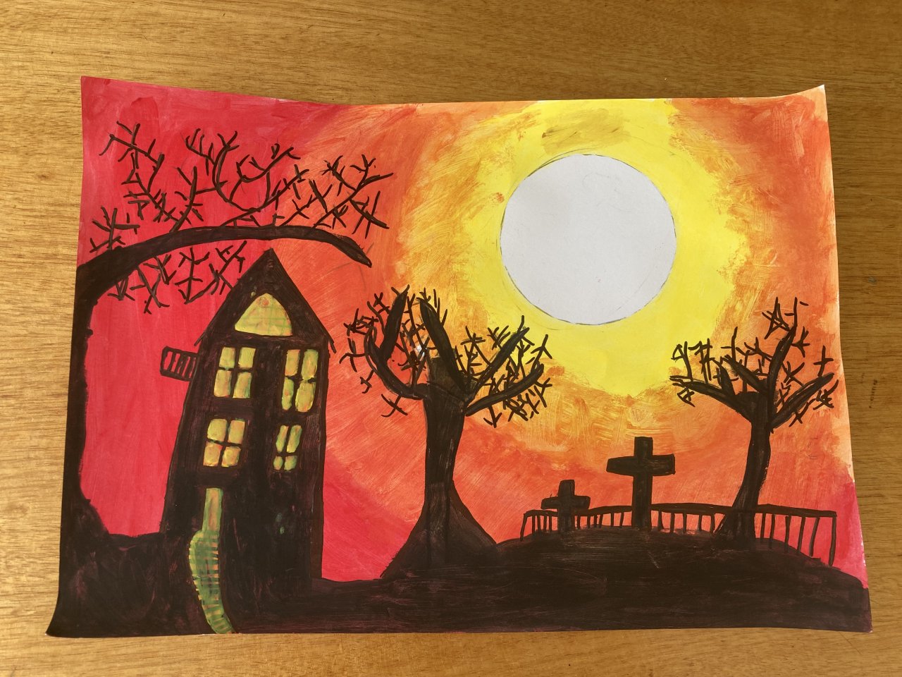 Datum: 23. 10. 2025V hodině výtvarné výchovy se sedmáci pustili do strašidelně zábavného úkolu – malování obrázků na téma Halloween. Na papírech se objevily dýně s vyřezanými úsměvy i celé noční krajiny s měsícem a temnými stromy.