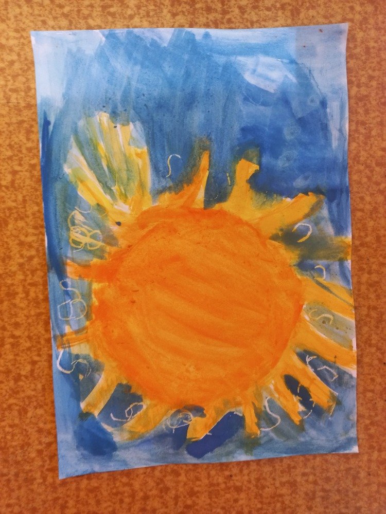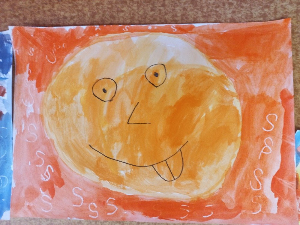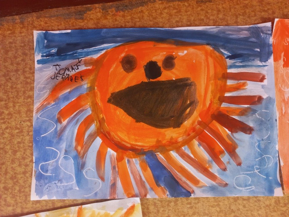 Datum: 24. 10. 2025Prvňáčci se pustili do veselé výtvarné a zároveň i písemné činnosti. Pomocí vodových barev malovali zářivé sluníčko, které rozzářilo celý jejich papír. Do barevného pozadí zkoušeli psát písmeno S bílou voskovkou – nové písmenko, které se právě učí.