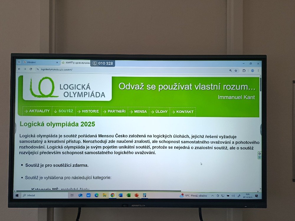 Datum: 2. 11. 2025Každoročně se naši žáci zapojují do Logické olympiády, celostátní soutěže pořádané Mensa Česko, která prověřuje logické myšlení, schopnost uvažování a řešení problémů. Soutěž probíhá online formou – žáci mají 30 minut na zodpovězení 25 otázek.