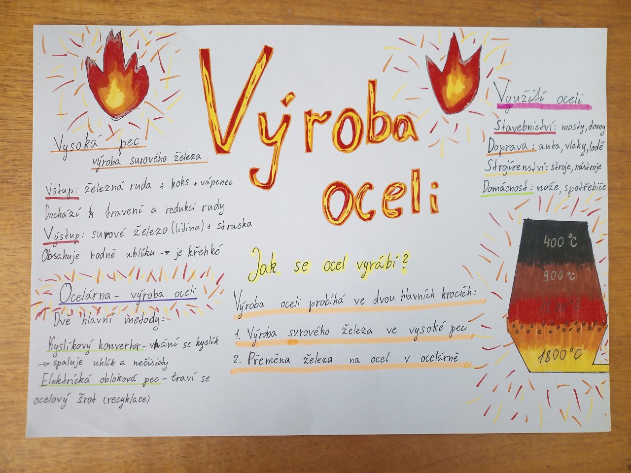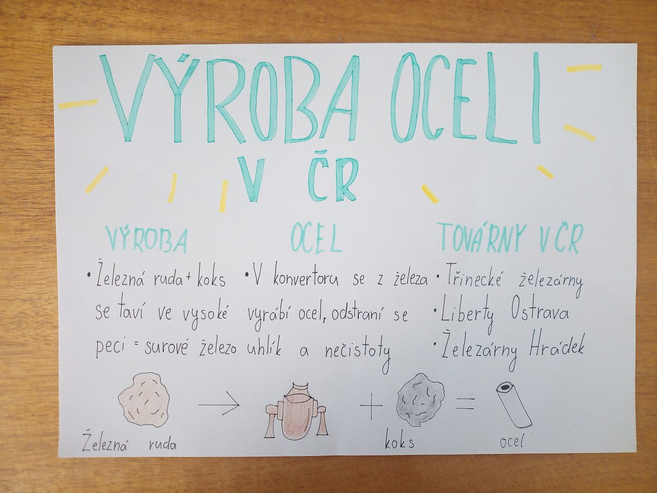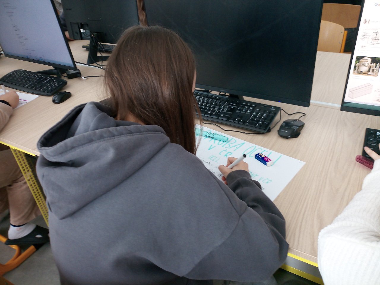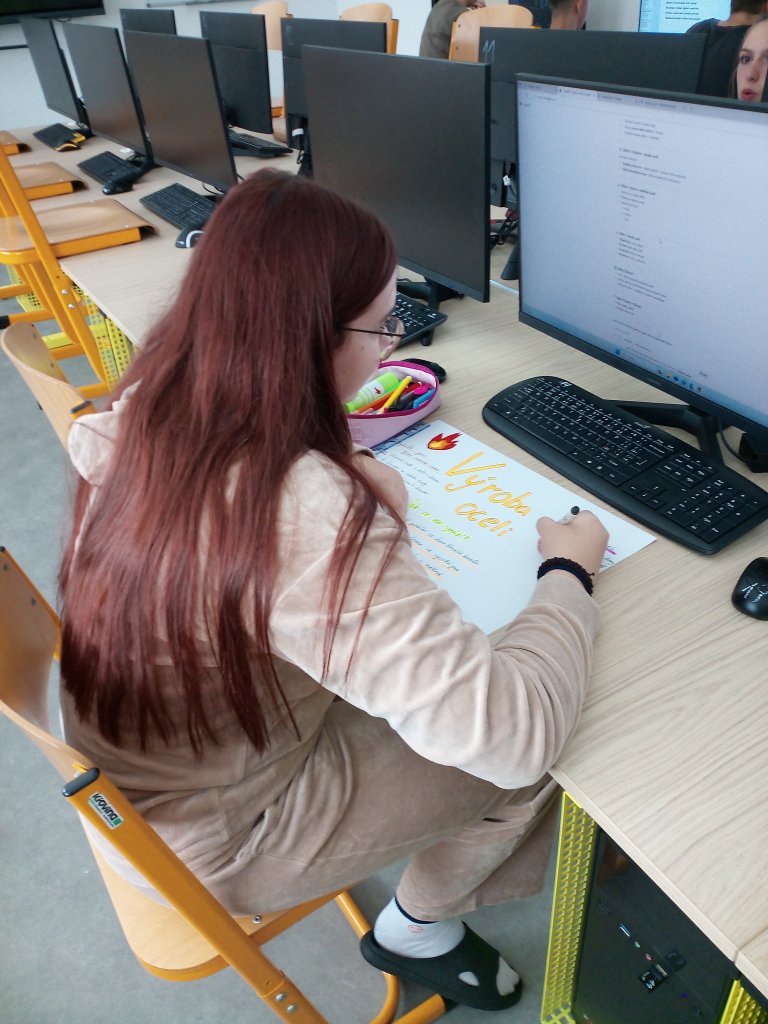 Datum: 6. 11. 2025V hodinách chemie se žáci 9. třídy zabývali tématem výroby oceli. Po krátkém úvodu do problematiky si připravili prezentace nebo plakáty, na kterých vysvětlovali, jak se ocel vyrábí z železné rudy, jakou roli hraje uhlík a jak se ocel dále zpracovává a využívá.