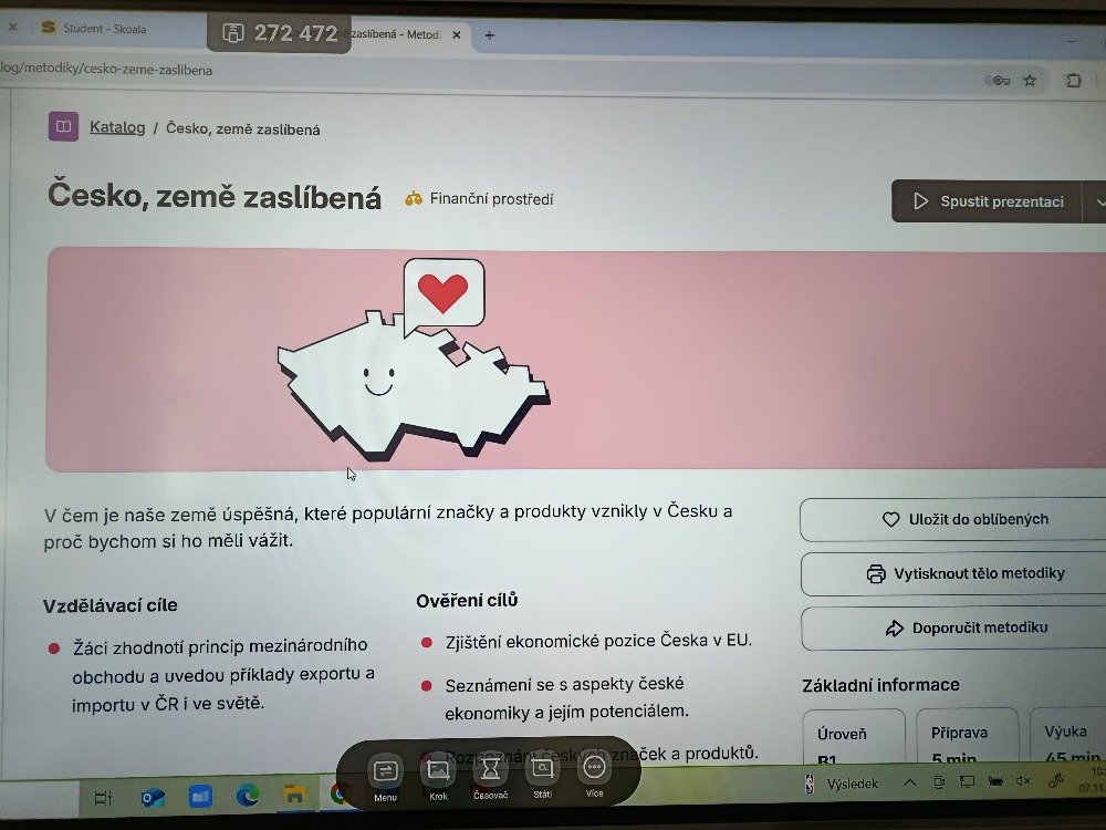 Datum: 9. 11. 2025V rámci výuky VkO se žáci zamýšleli nad tím, co se jim vybaví, když se řekne Česká republika. Diskuse se dotkla nejen současnosti, ale i historických souvislostí, čímž jsme propojili učivo s dějepisem.