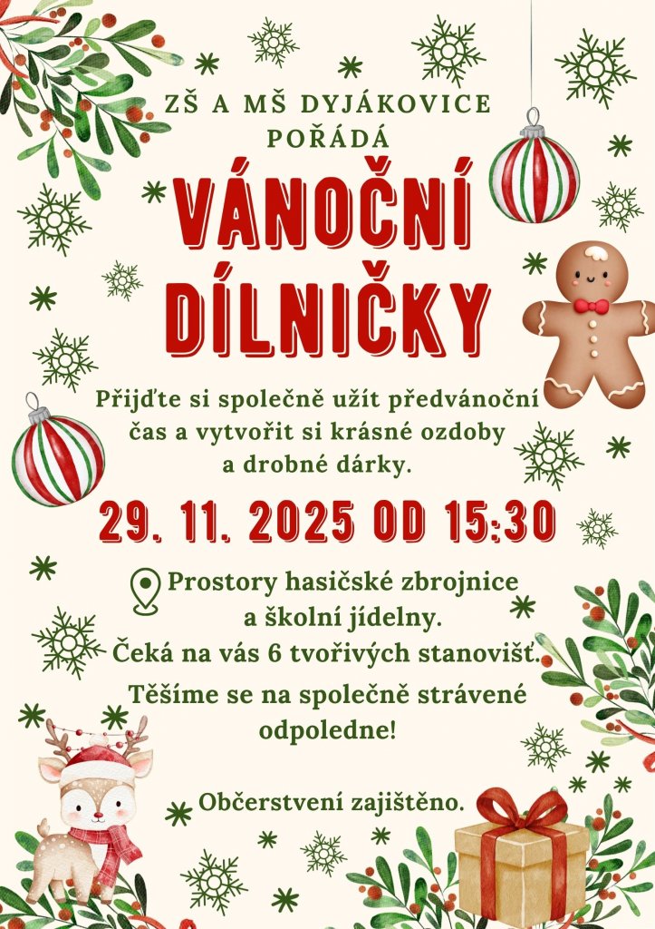 Součástí programu budou také vánoční dílničky pro děti i dospělé, kde si můžete vyrobit vlastní ozdoby nebo drobné dárky.