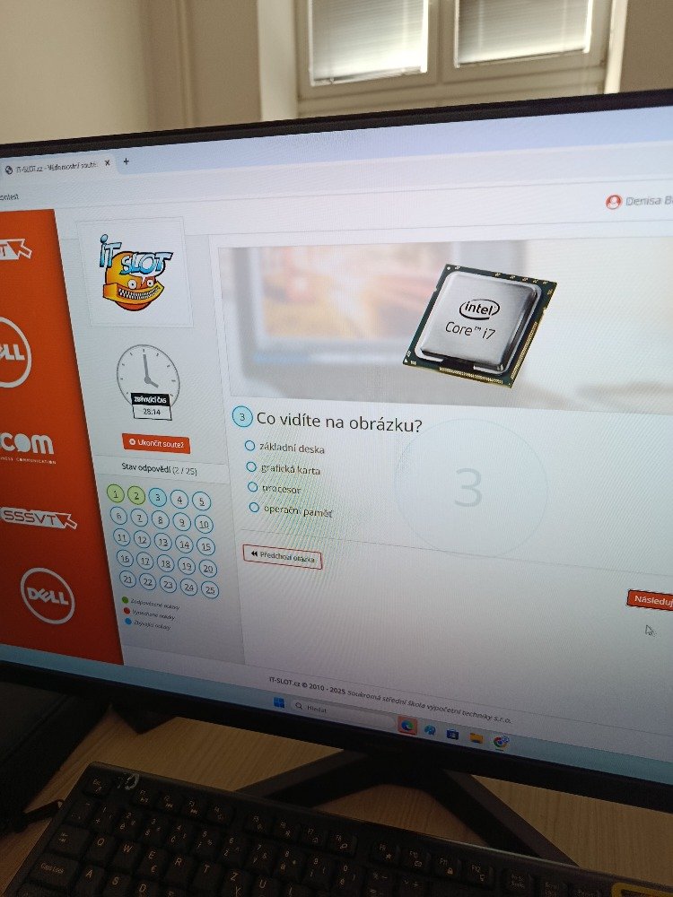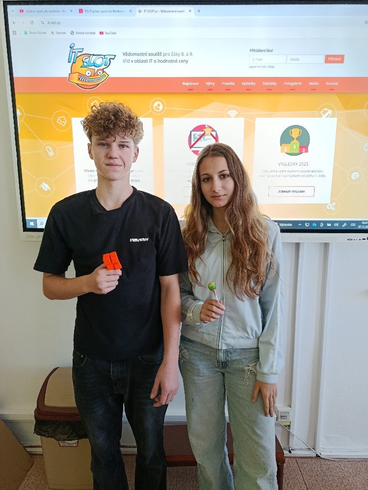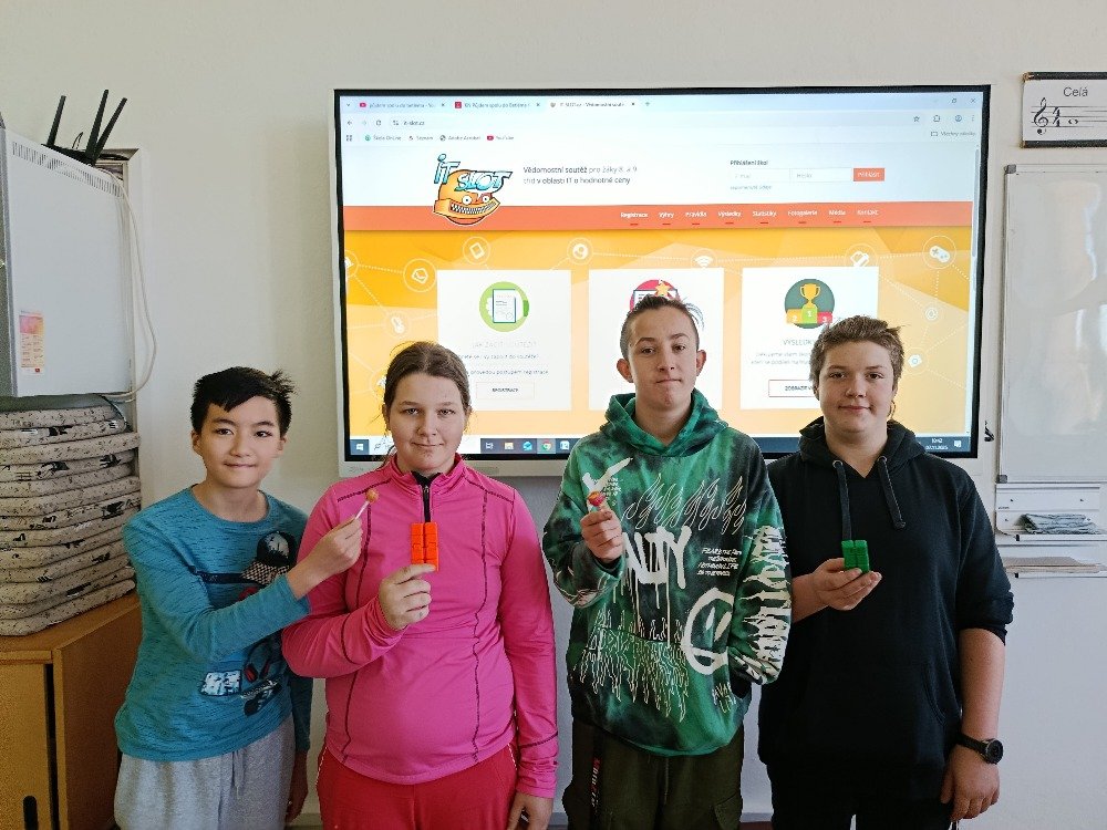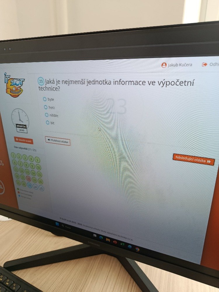 Datum: 11. 11. 2025Žáci 7. – 9. třídy se zapojili do vědomostní soutěže IT-SLOT. Do prvního kola celostátní soutěže IT SLOT se letos zapojilo celkem 18 306 žáků z 293 škol z celé České republiky. Cílem soutěže je prohloubit zájem žáků o studium informačních technologií a zároveň rozvíjet jejich logické a matematické myšlení.
