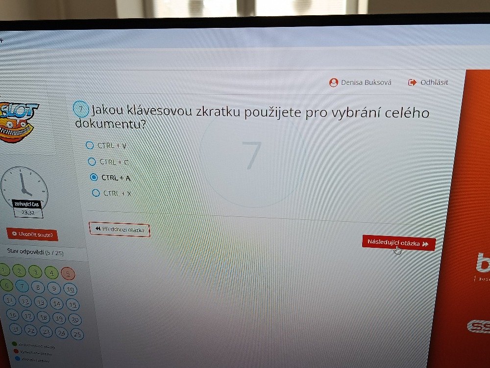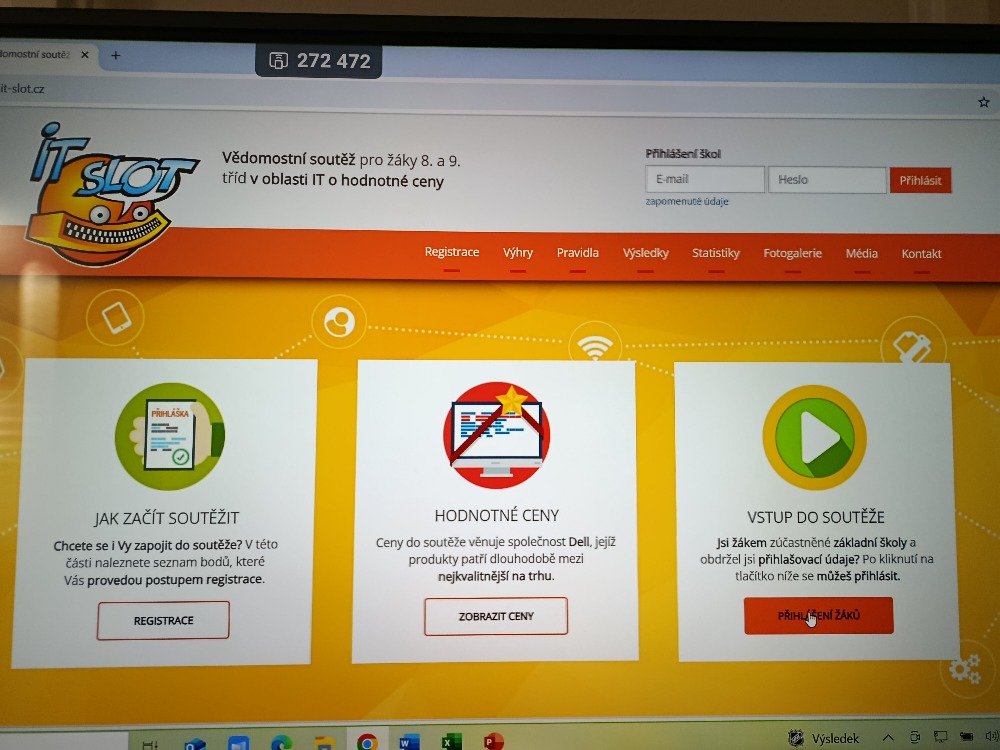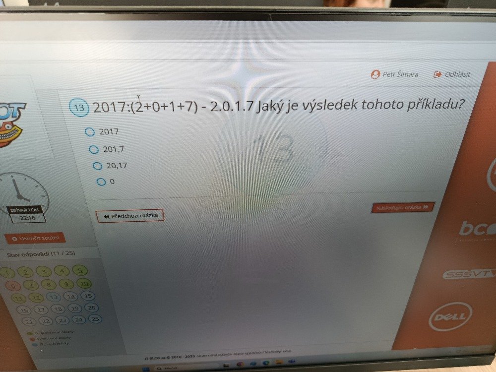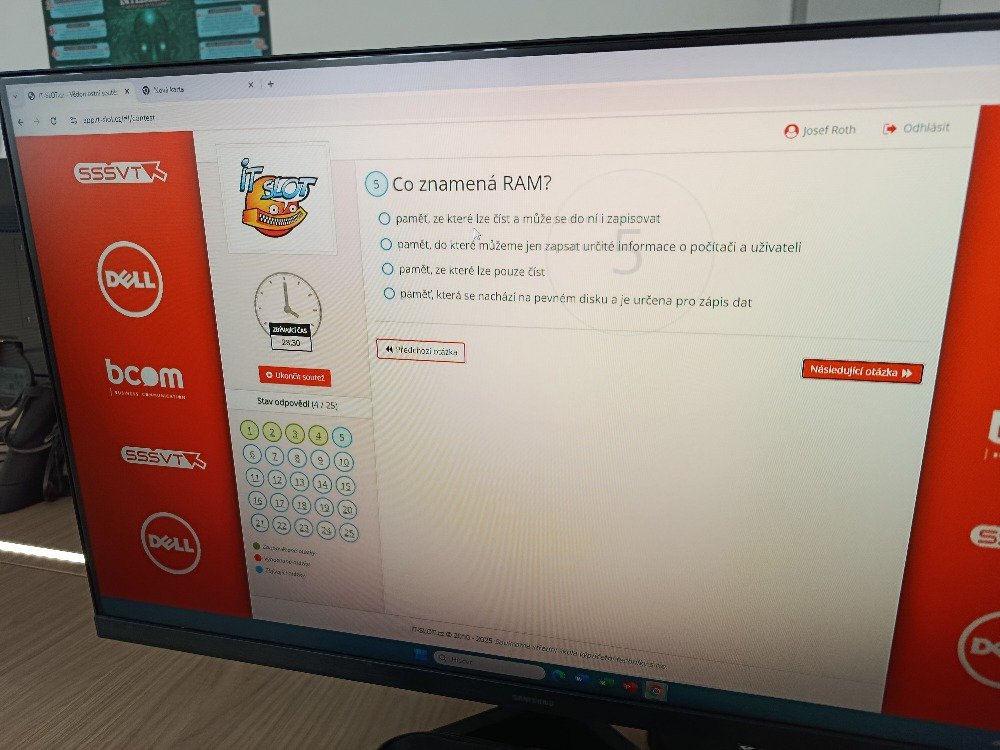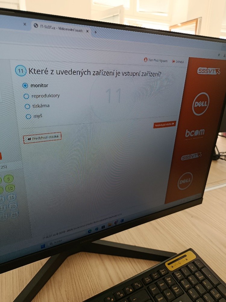 Datum: 11. 11. 2025Žáci 7. – 9. třídy se zapojili do vědomostní soutěže IT-SLOT. Do prvního kola celostátní soutěže IT SLOT se letos zapojilo celkem 18 306 žáků z 293 škol z celé České republiky. Cílem soutěže je prohloubit zájem žáků o studium informačních technologií a zároveň rozvíjet jejich logické a matematické myšlení.