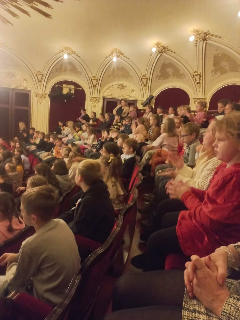 Datum: 13. 11. 2025Ve čtvrtek 6. listopadu navštívili žáci prvního stupně Městské divadlo Znojmo, kde si nenechali ujít loutkovou revui Na kouzelném paloučku v podání skupiny Loudadlo. Představení nabídlo černodivadelní scény a loutky v nadživotní velikosti. Veselé dialogy, písničky a soutěže vtáhly do děje celé publikum. Na jevišti se objevili i známí televizní kamarádi Jů a Hele, což vyvolalo velké nadšení. Celá revue byla plná kouzel, humoru a pohádkové atmosféry, kterou si všichni přítomní naplno užili.