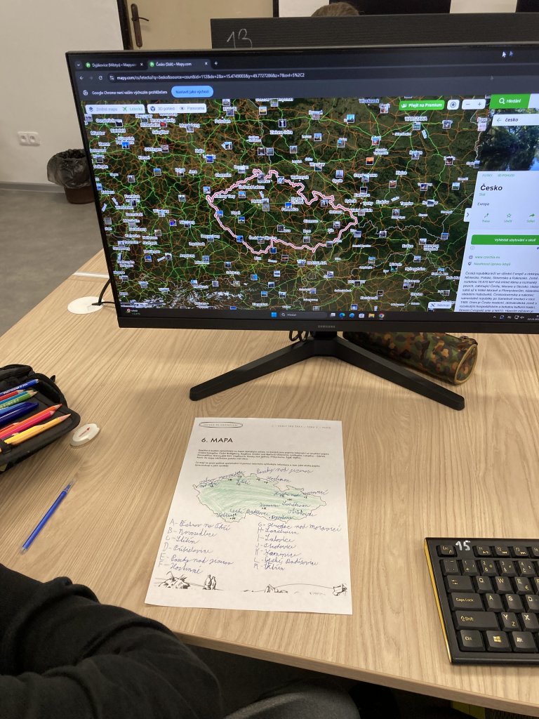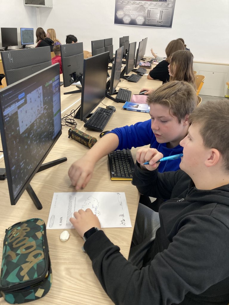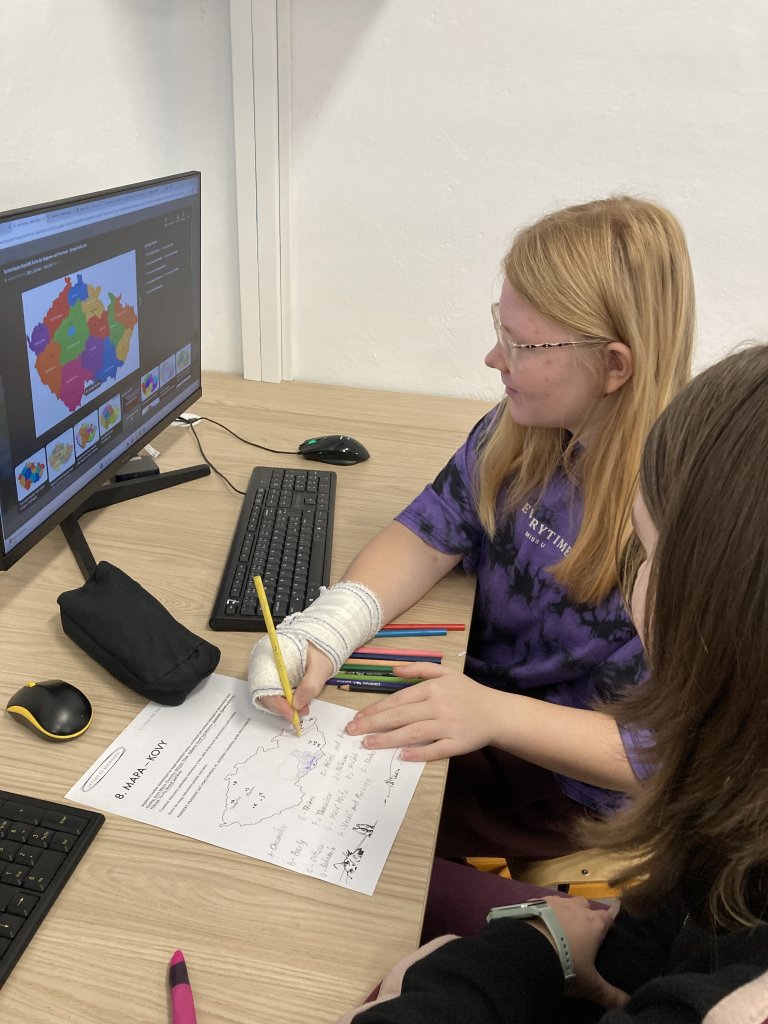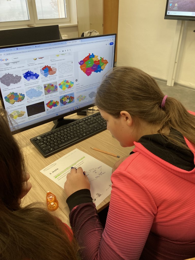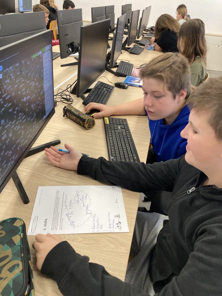 Datum: 14. 11. 2025Sedmáci se v rámci programu Recyklohraní pustili tentokrát do úkolu se zeměpisným zaměřením, který probíhal ve skupinách a vyžadoval také práci s internetem.