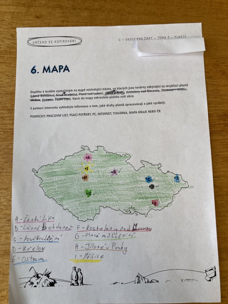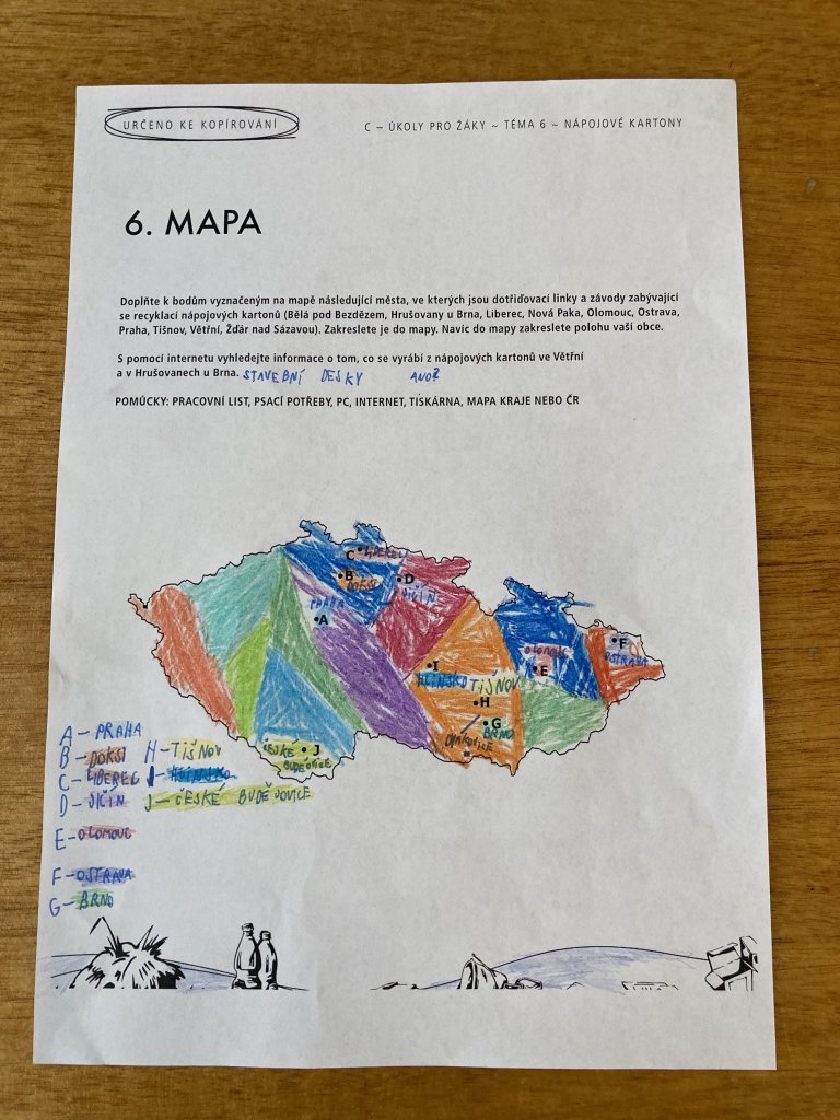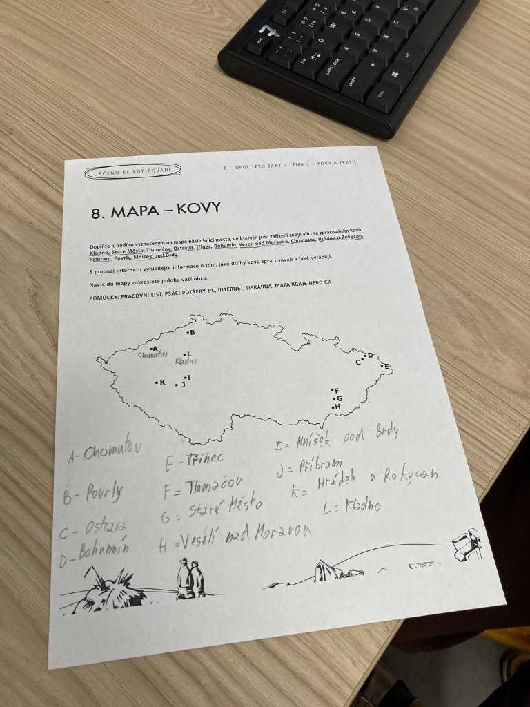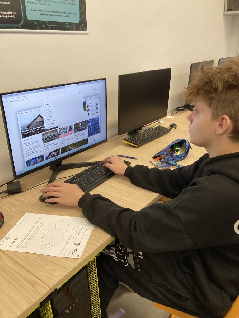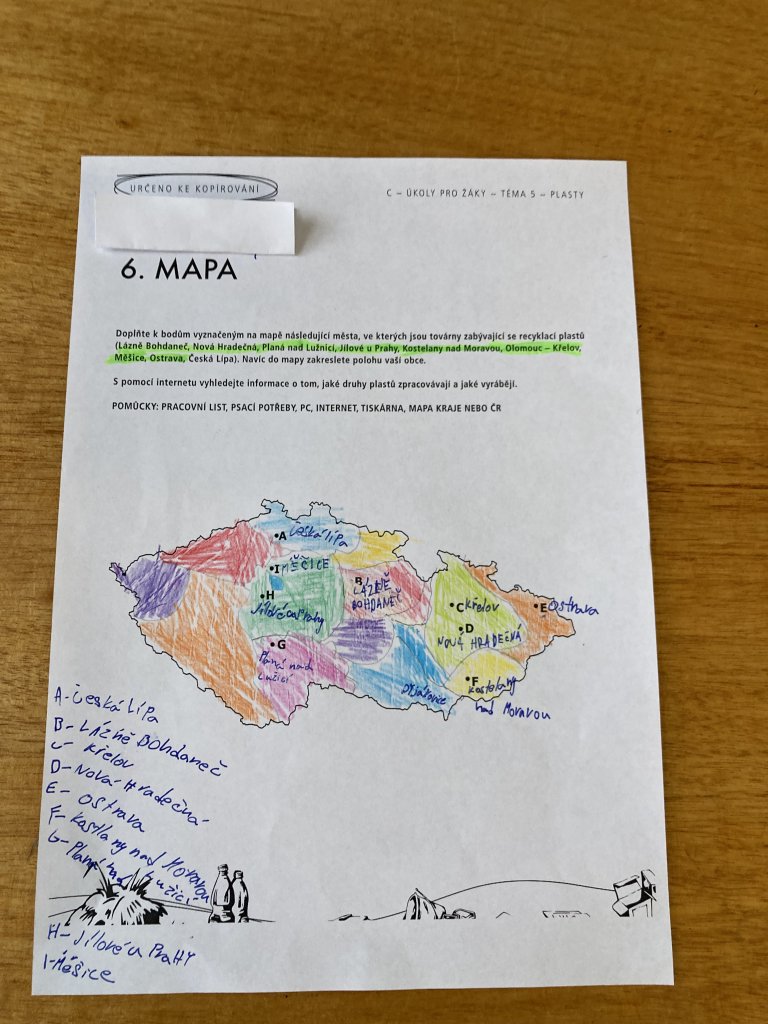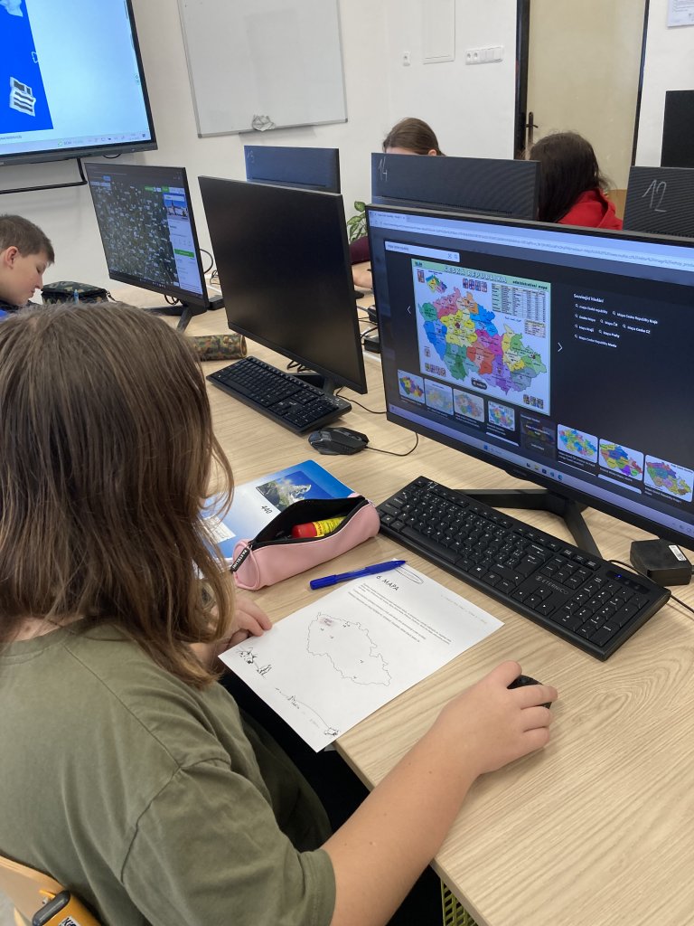Datum: 14. 11. 2025Sedmáci se v rámci programu Recyklohraní pustili tentokrát do úkolu se zeměpisným zaměřením, který probíhal ve skupinách a vyžadoval také práci s internetem.