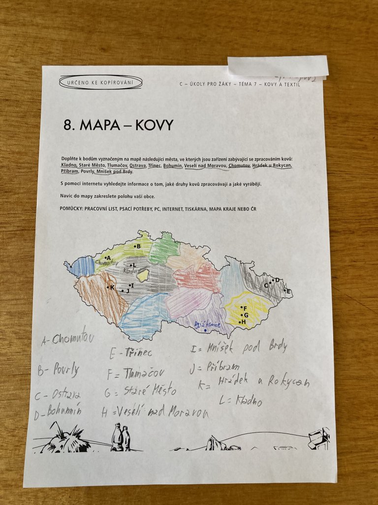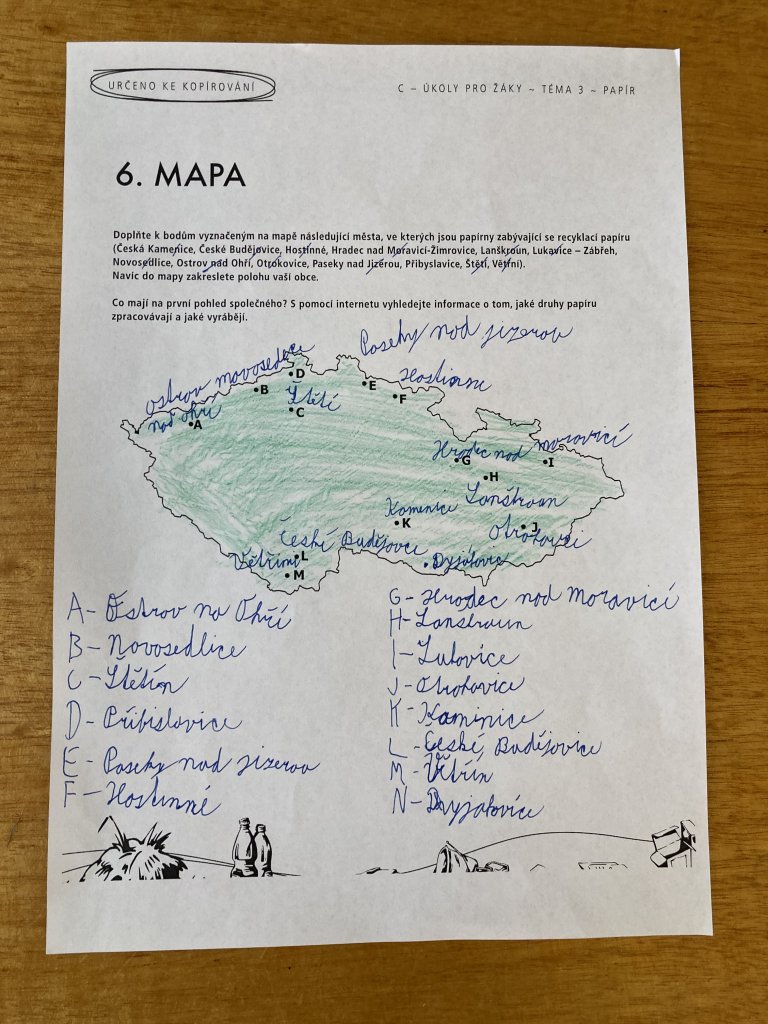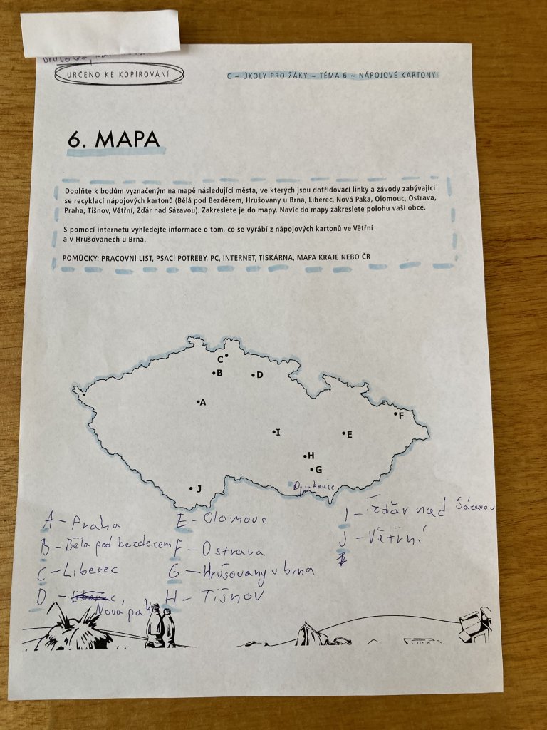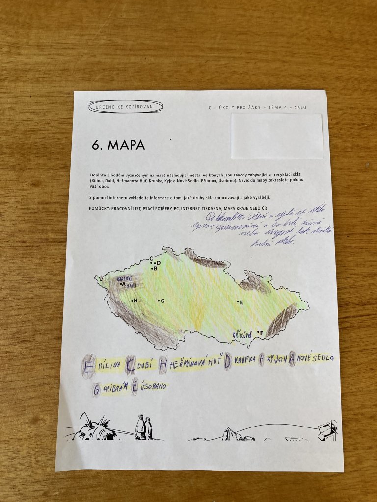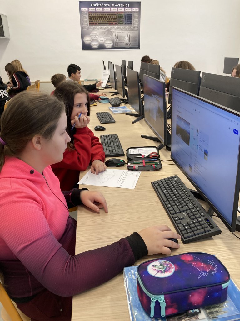 Datum: 14. 11. 2025Sedmáci se v rámci programu Recyklohraní pustili tentokrát do úkolu se zeměpisným zaměřením, který probíhal ve skupinách a vyžadoval také práci s internetem.