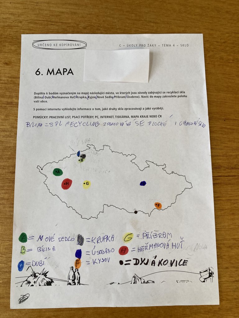 Jejich cílem bylo doplnit do mapy České republiky názvy vyznačených míst, kde se zpětně recykluje papír, sklo, plast, kovy a další materiály. Do mapy přidali i Dyjákovice.