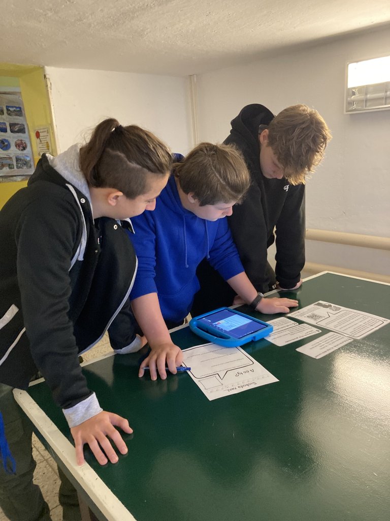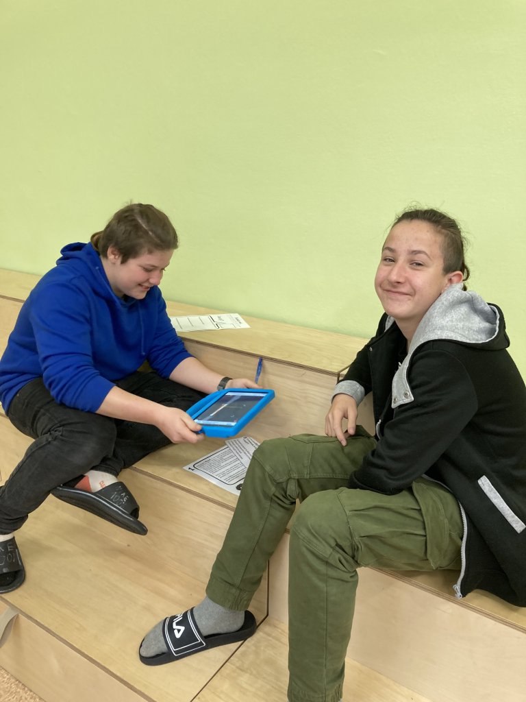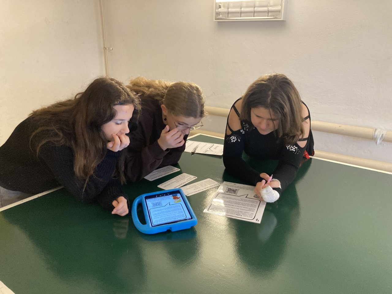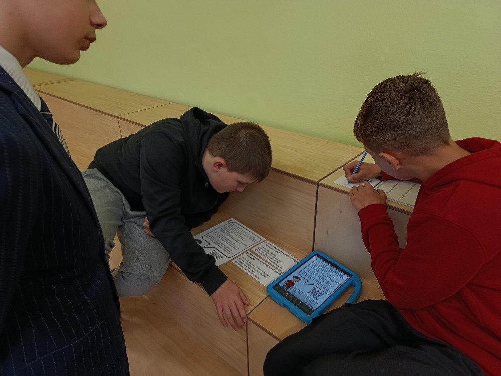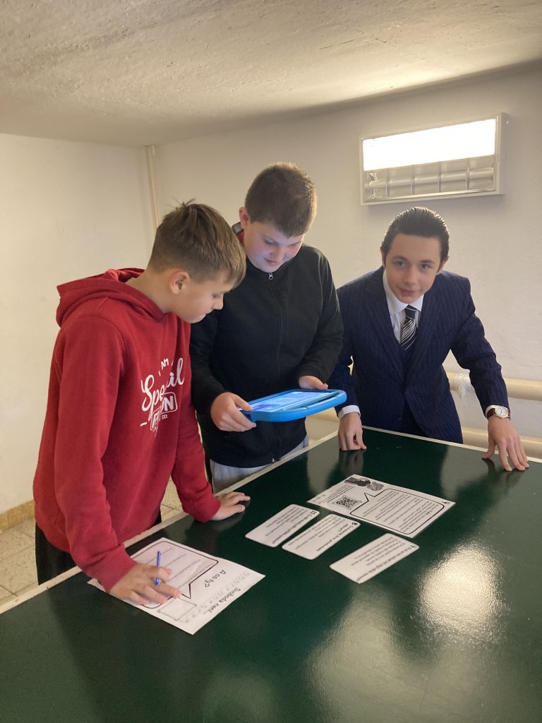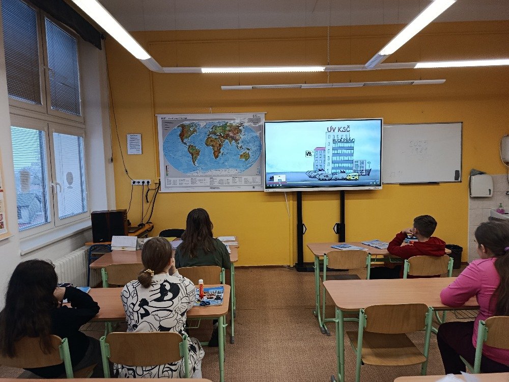 Poté se žáci rozdělili do skupin. Každá skupina obdržela zadání s QR kódem, pomocí něhož si pustila krátkou ukázku (o tom, že se nesmělo volně cestovat, jak lidé stáli fronty na banány či nemohli svobodně vyjadřovat své názory). Po poslechu žáci odpovídali na otázky.