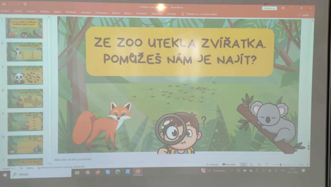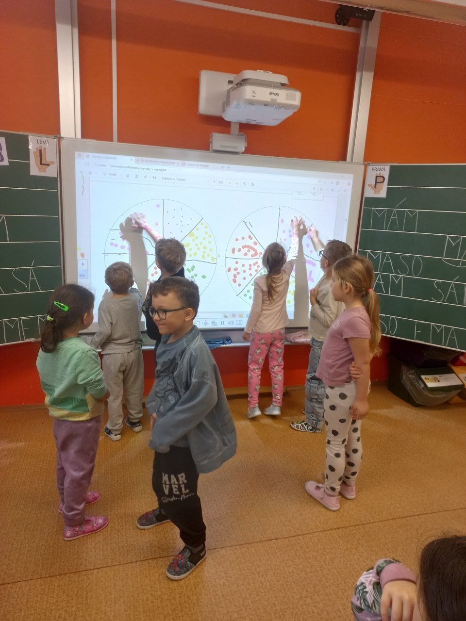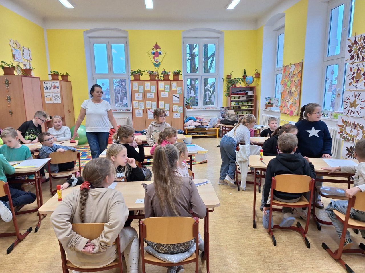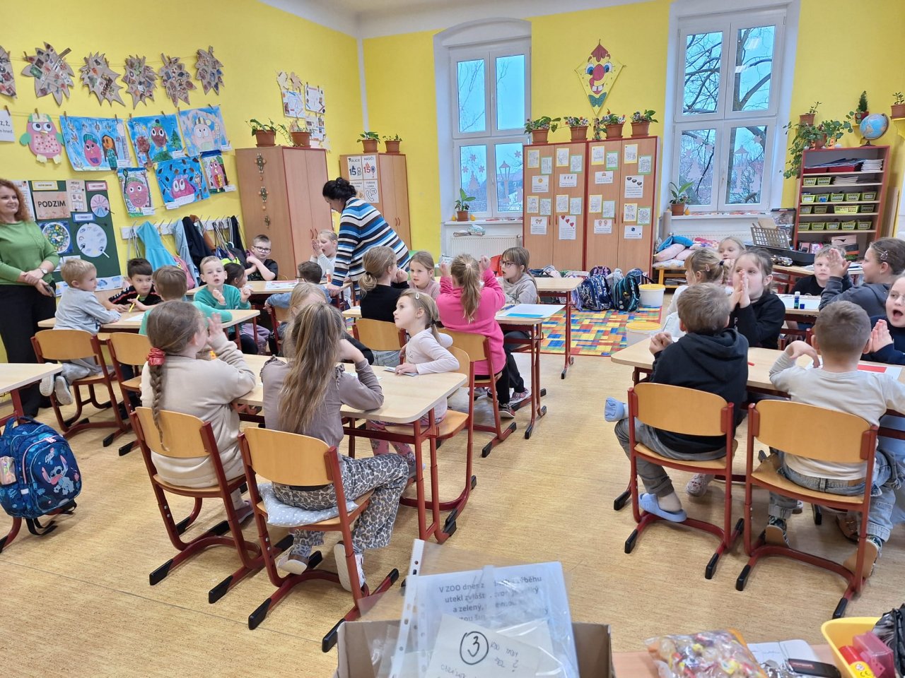 Děti se také zapojily do aktivit v 1. a 2. třídě, kde si vyzkoušely jednoduché úkoly na interaktivní tabuli a zahrály hru Na detektivy. Společně strávený čas byl plný radosti, nových zážitků a poznávání. Za splněné úkoly si zasloužily drobné dárky a na památku si odnesly upomínkový list.
