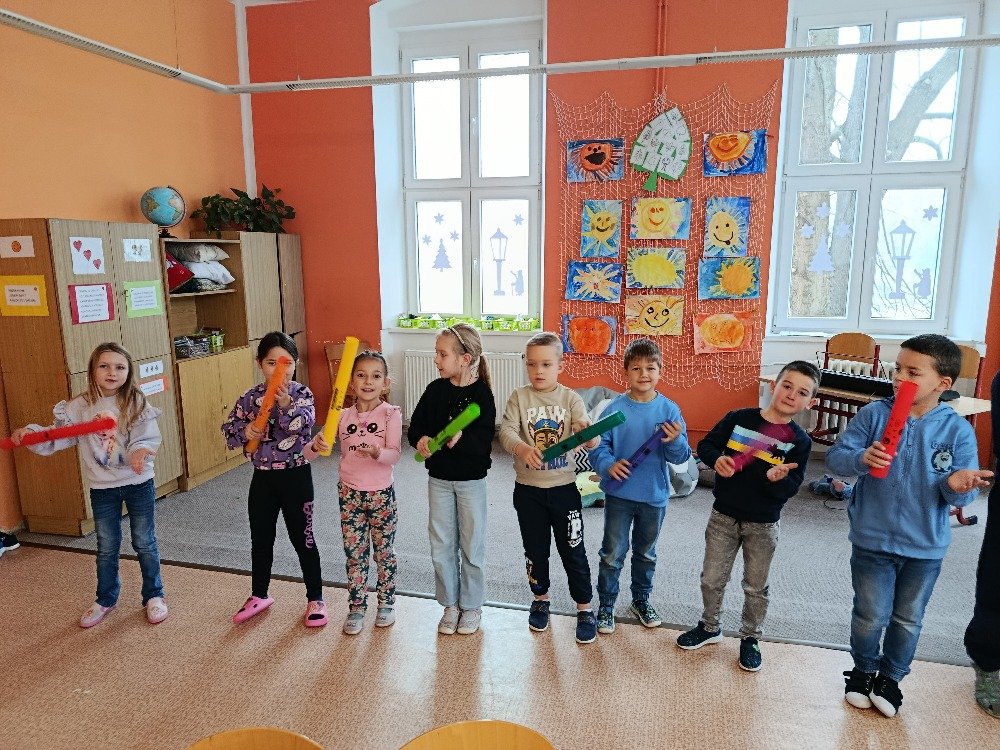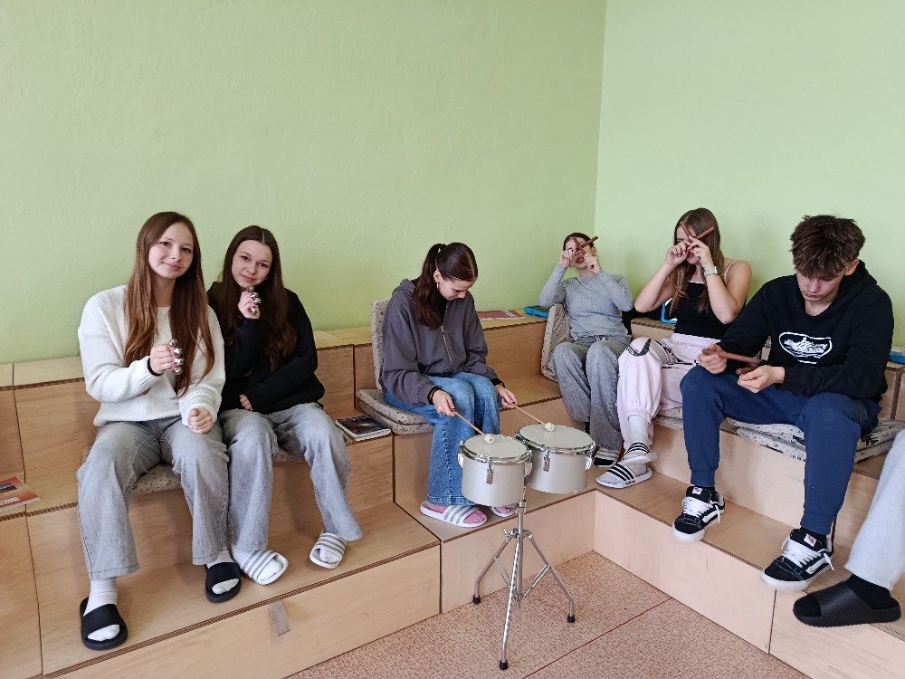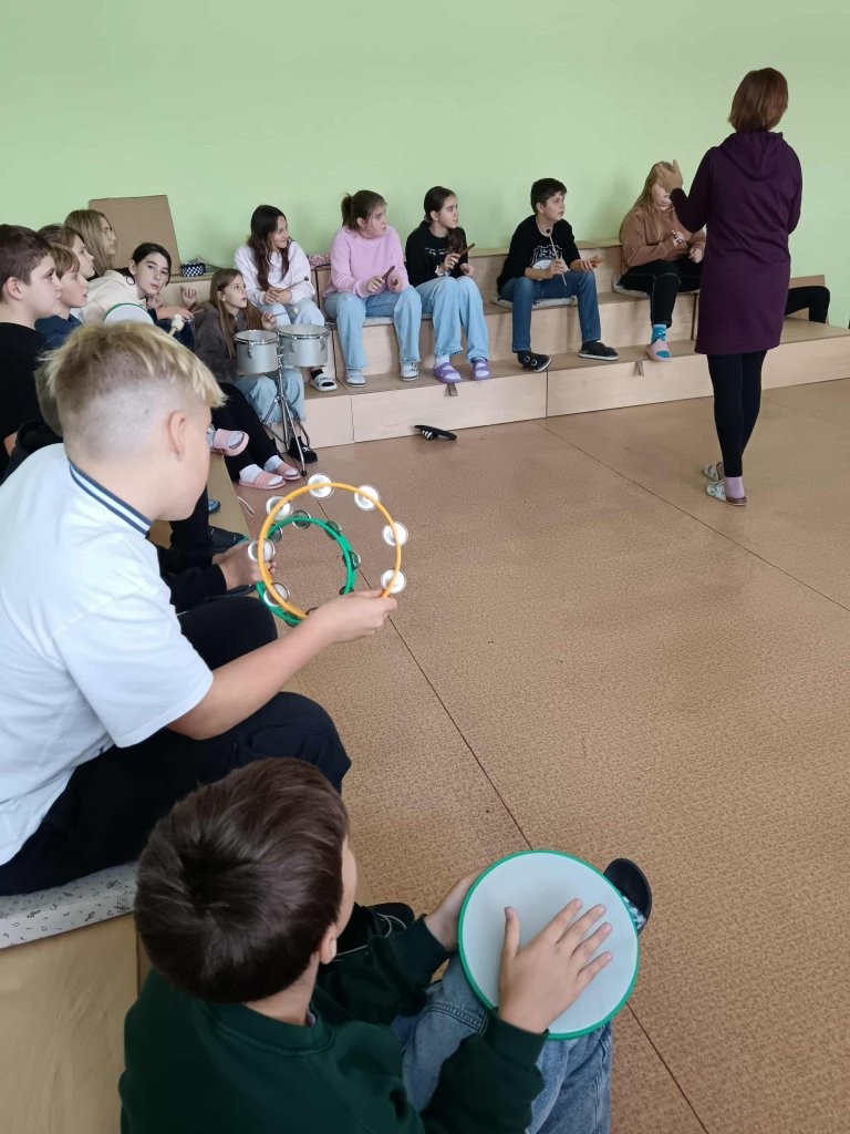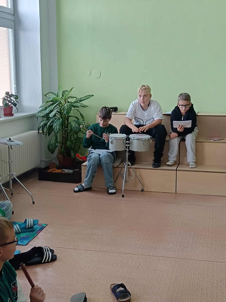 Letos jsme poprvé využili nové hudební nástroje zakoupené školou, které dětem dodaly ještě větší chuť se do aktivit zapojit. Celá škola se rozezněla rytmy – žáci bubnovali do taktu různých typů písní a zkoušeli, jak mohou zvuky společně vytvářet silné poselství.