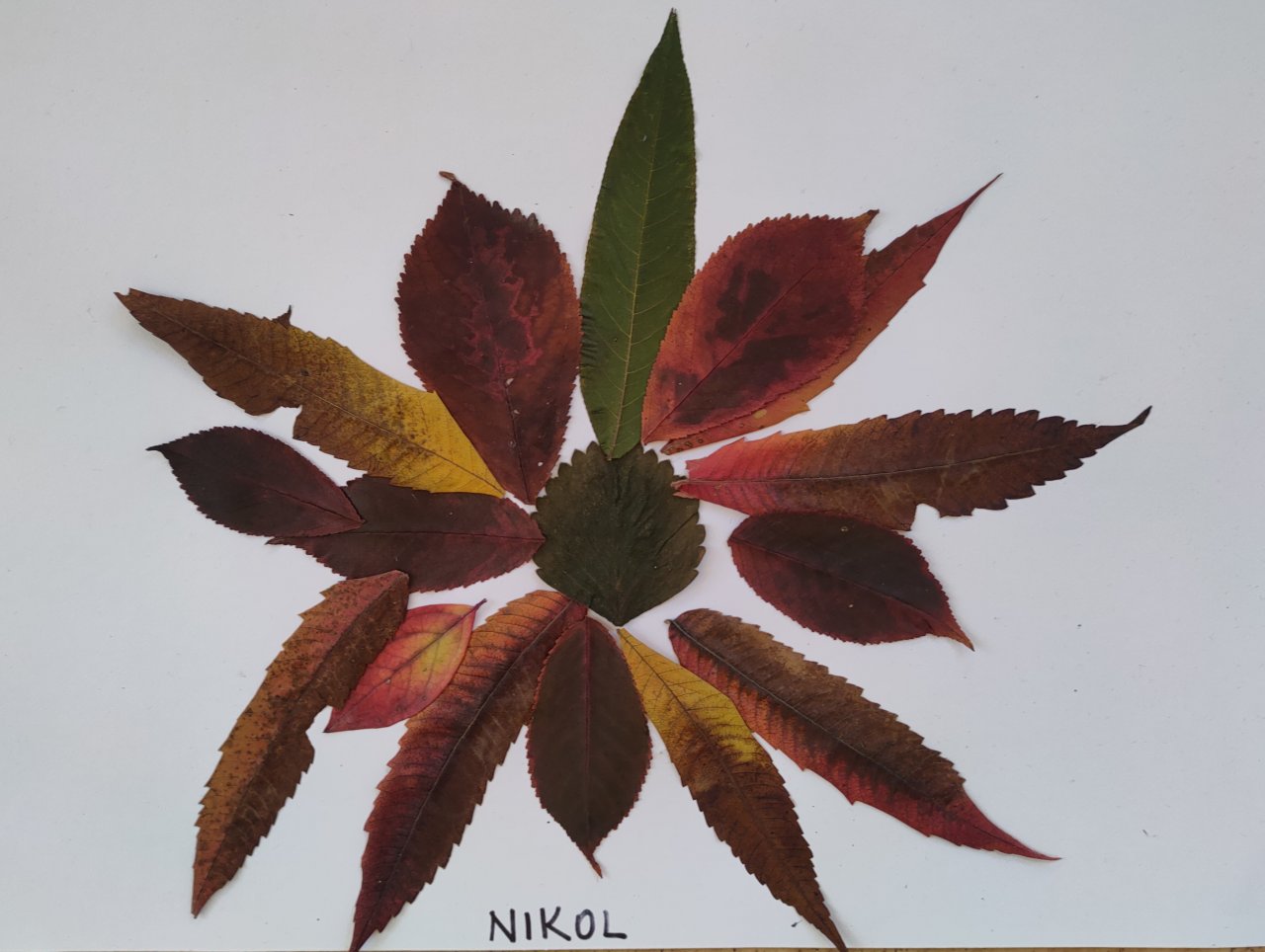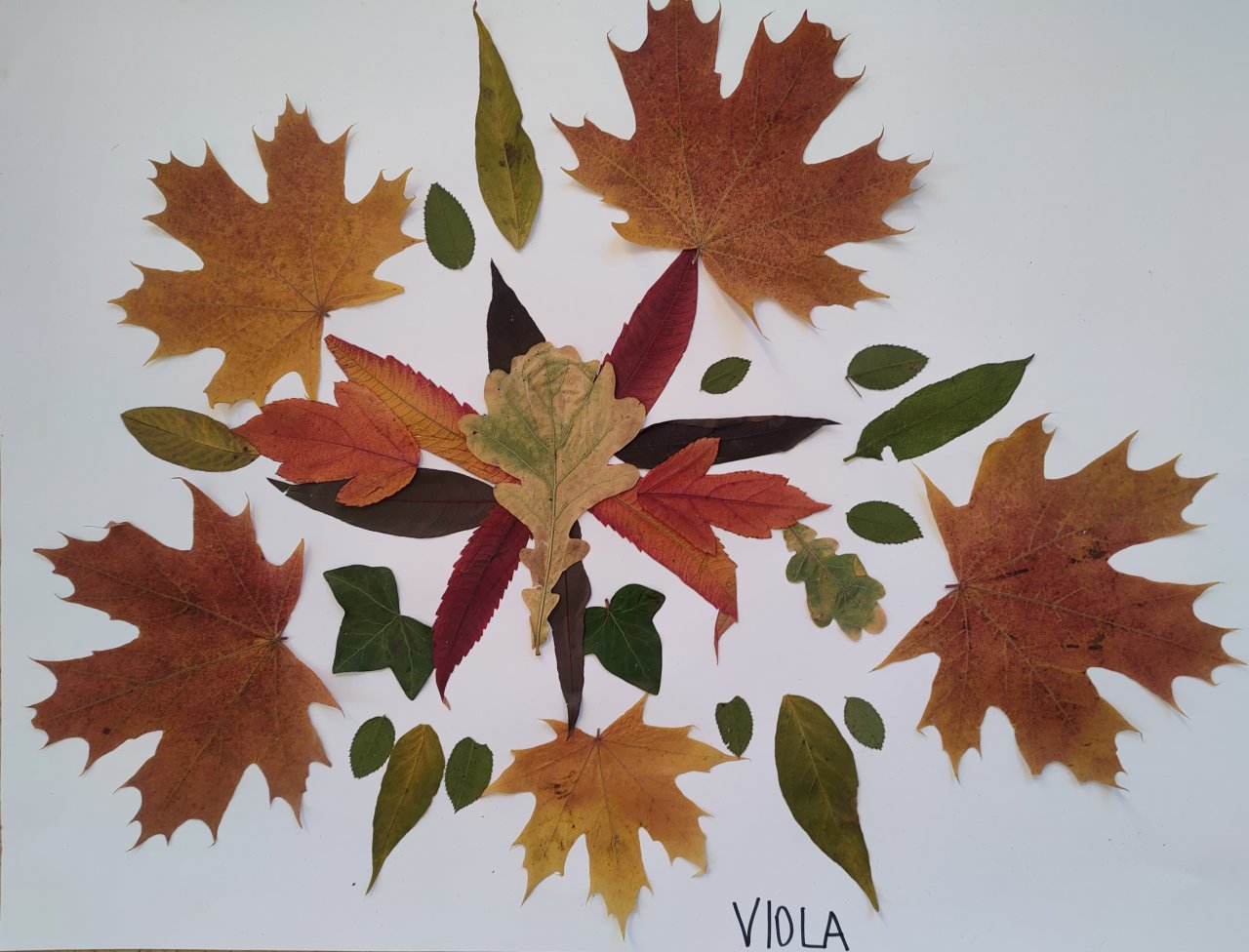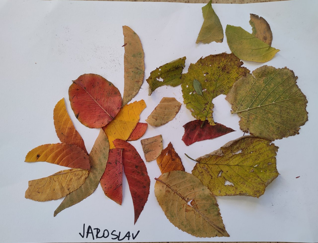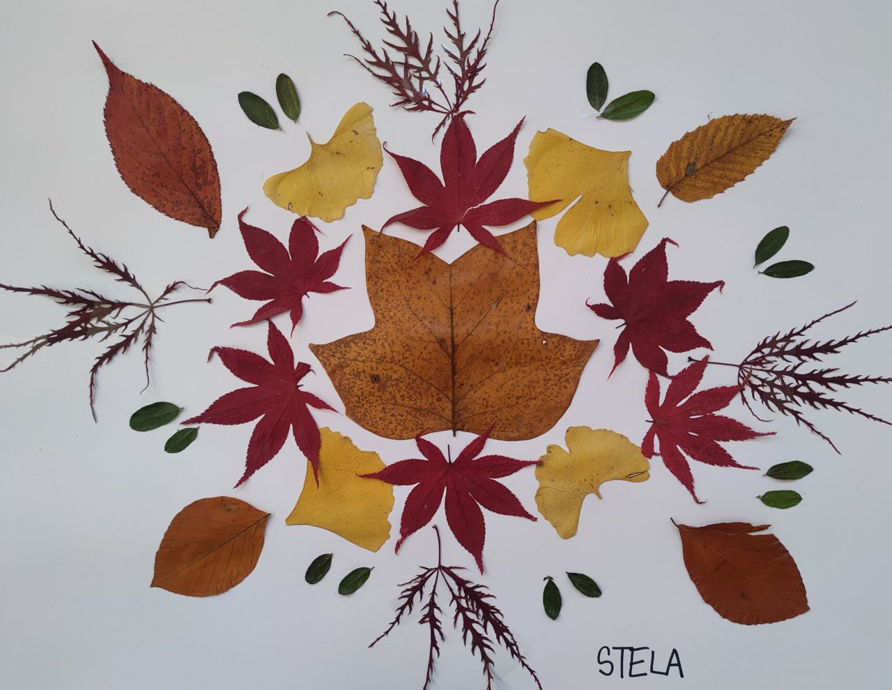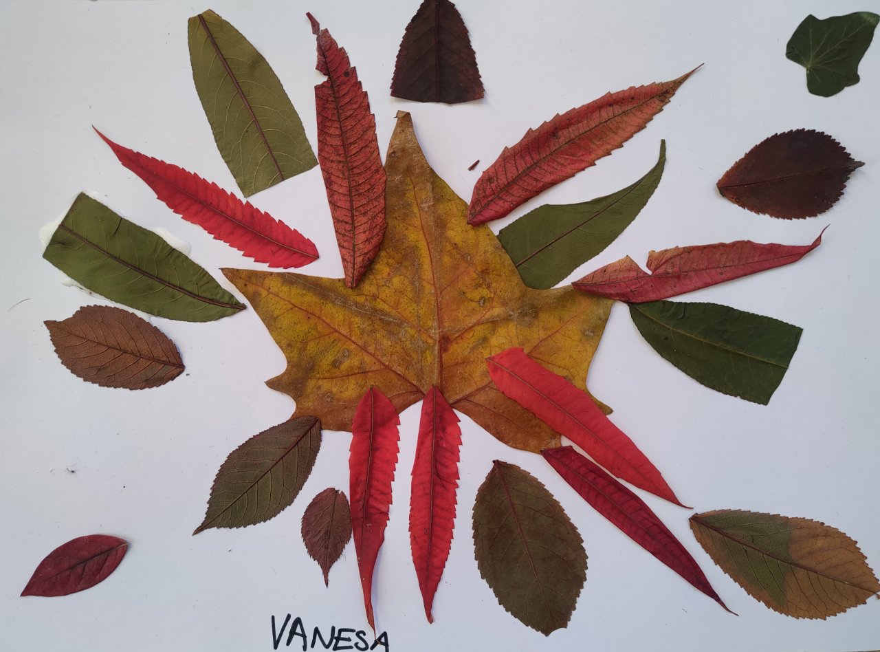 Žáci nasbírané a vylisované listy seskládali do tvarů připomínajících mandaly a poté je nalepili.