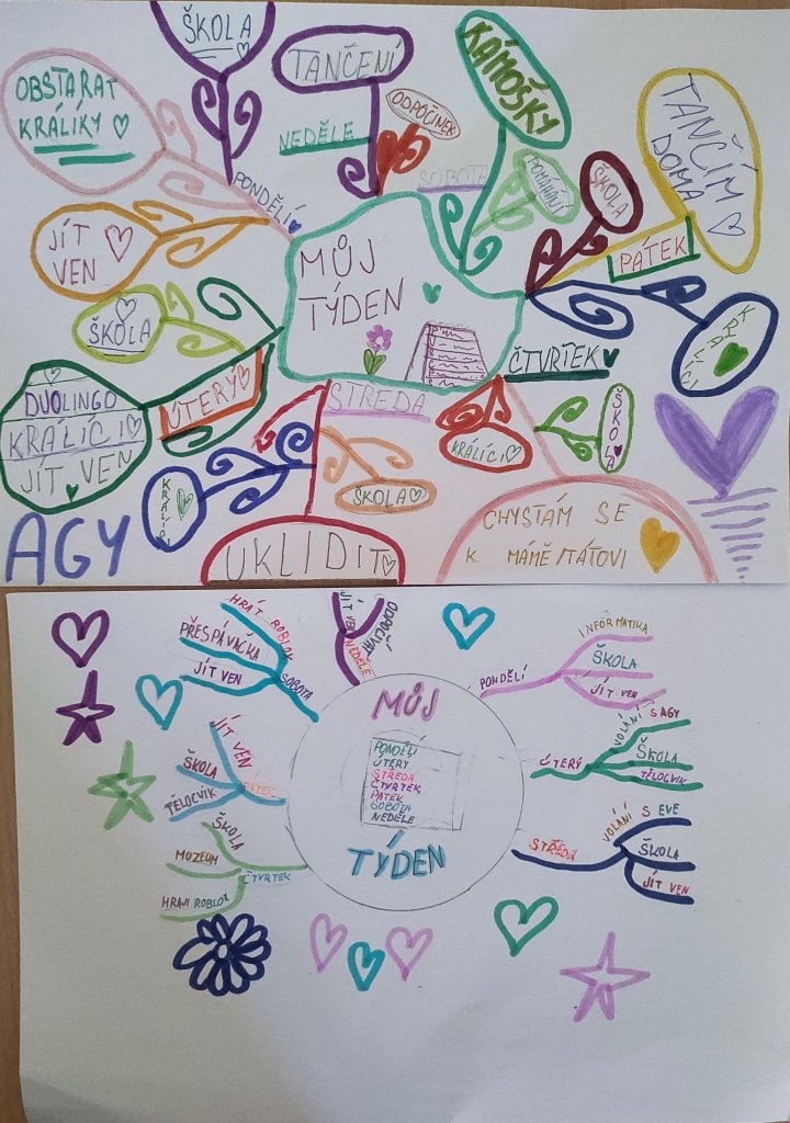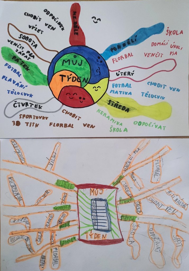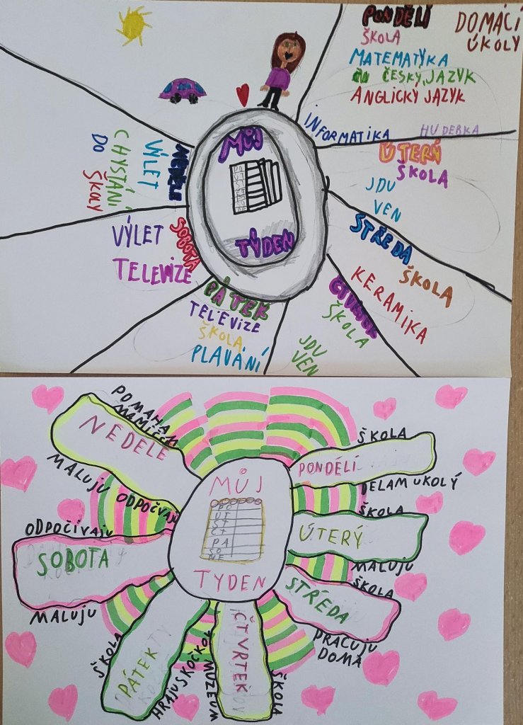 Děti ve čtvrté třídě si tvořily týdenní plán, do kterého si ke každému dni zapsaly své povinnosti i oblíbené činnosti. Díky tomu se učí lépe organizovat čas a sladit školní úkoly se svými zálibami.