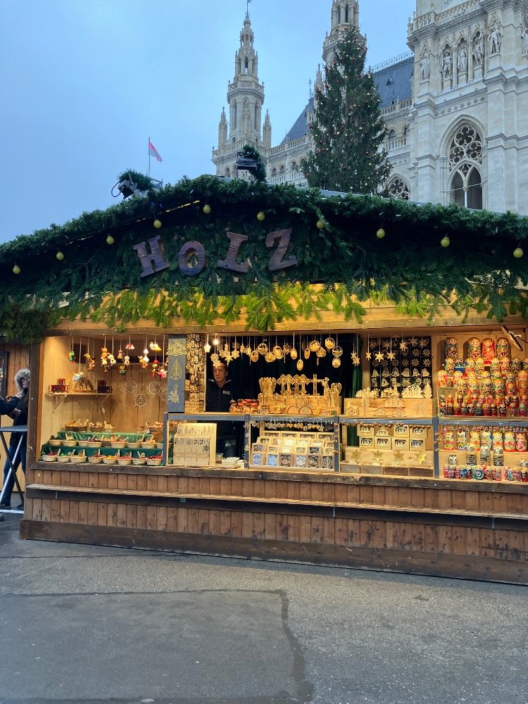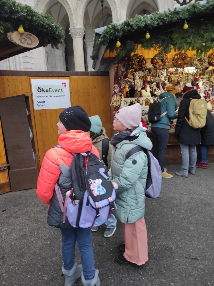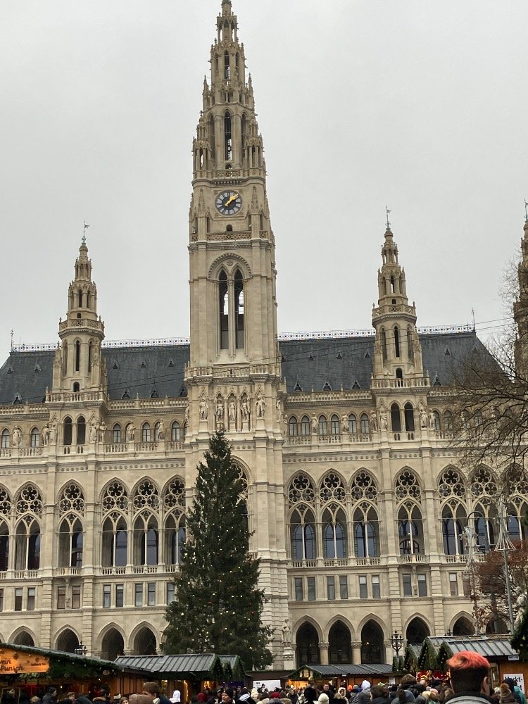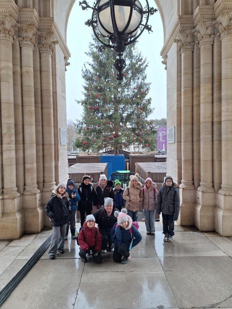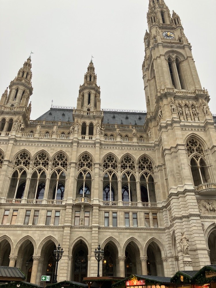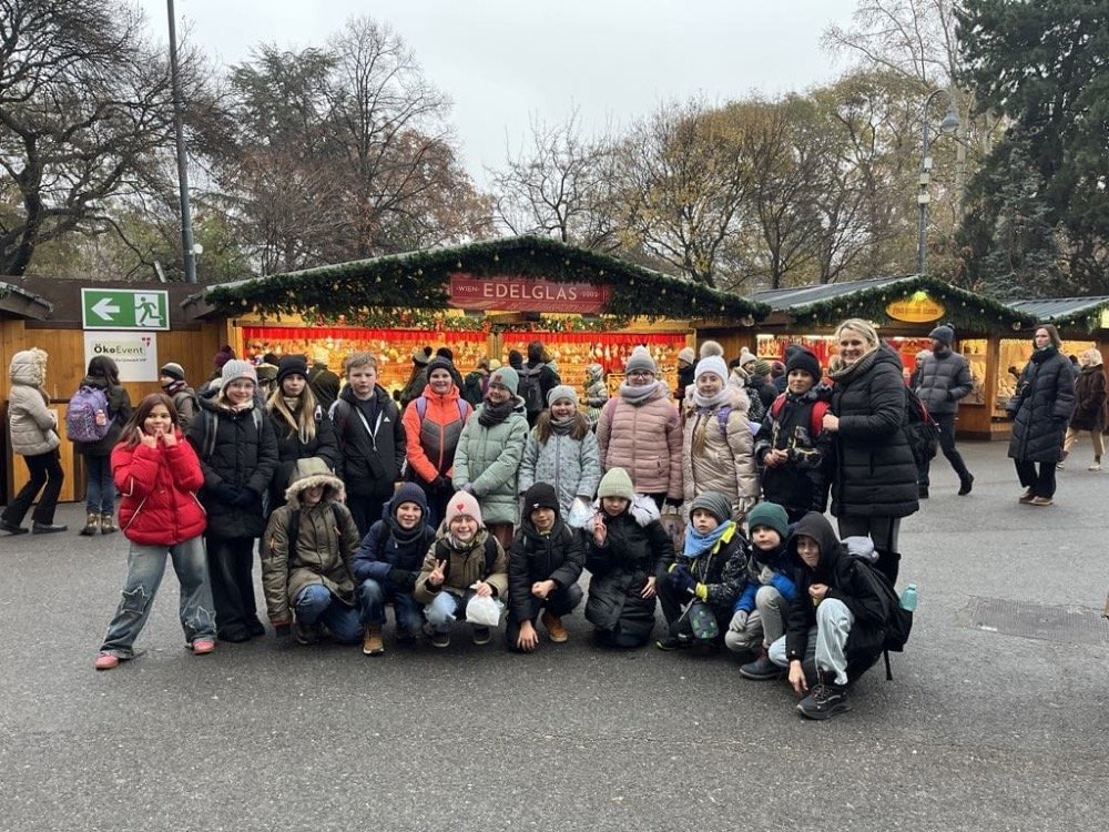 Po naučné části výletu pokračovala adventní atmosféra. Skupina se vydala na vánoční trhy na Rathausplatz, kde je okouzlily vůně perníčků, teplého punče i krásná výzdoba. Nad trhy se tyčila majestátní Vídeňská radnice, jeden z ikonických symbolů města. Během procházky si žáci prohlédli také další významné památky v blízkosti – Burghtheater, impozantní budovu Parlamentu a historickou Vídeňskou univerzitu. Cestou plnili různé úkoly, za které dostali sladkou odměnu.