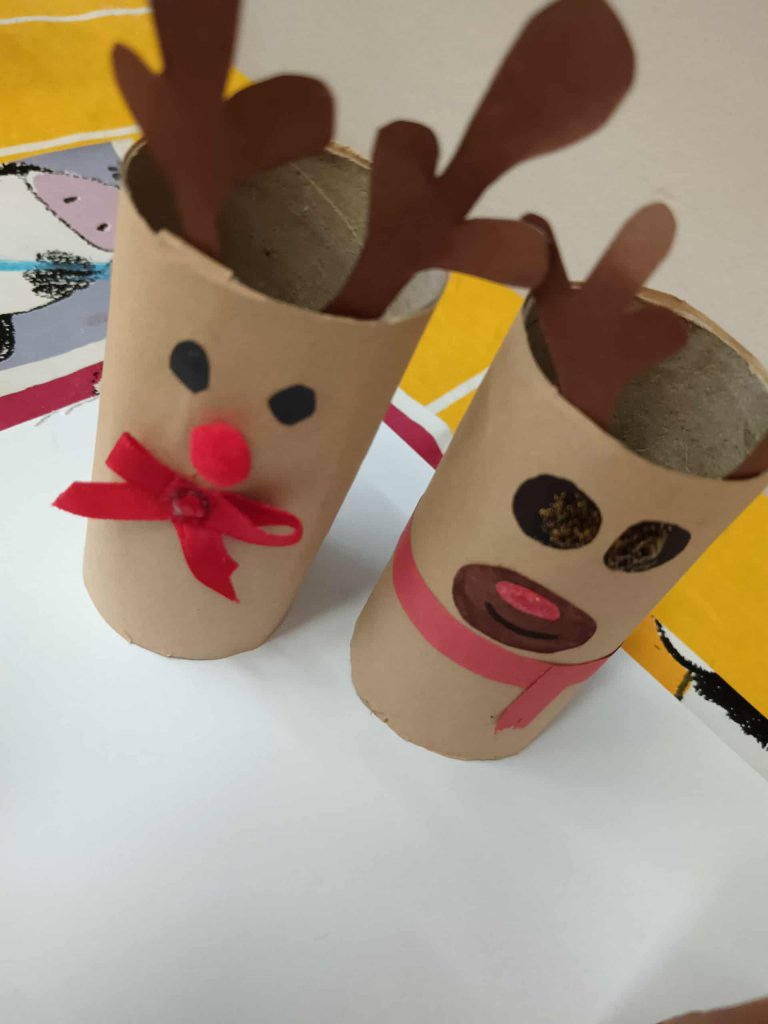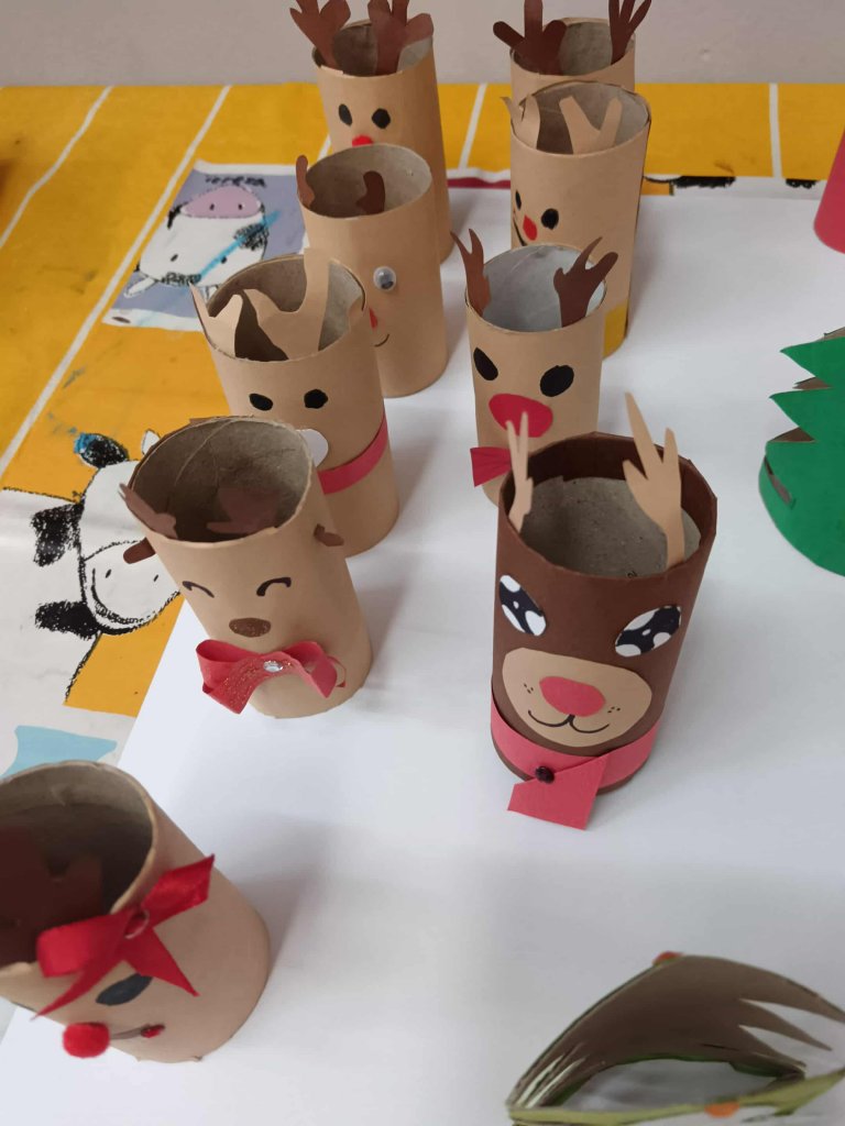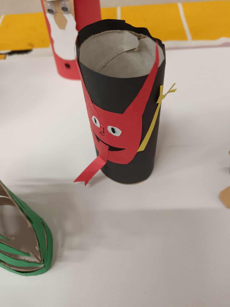 Vánoční tvoření šesťáků: z ruliček vznikli čerti, stromečky i sobi